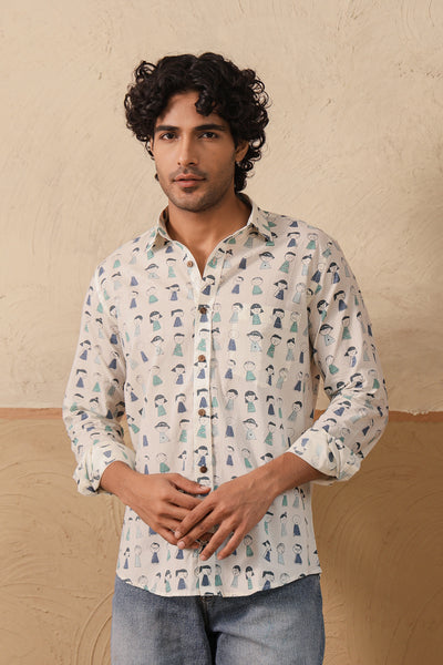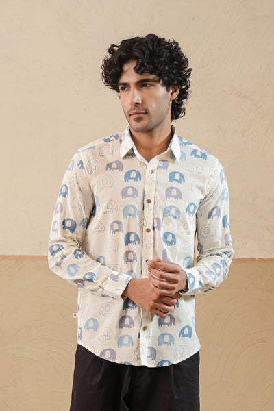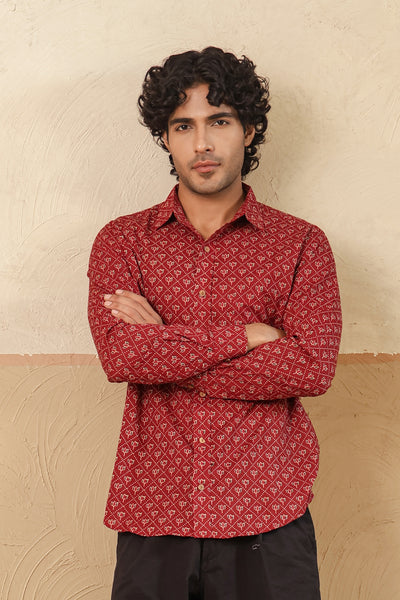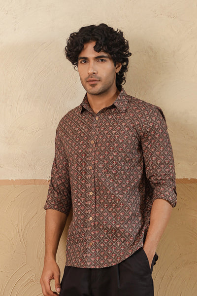 Mustard Brown Floral Buti Full Sleeve Shirt
