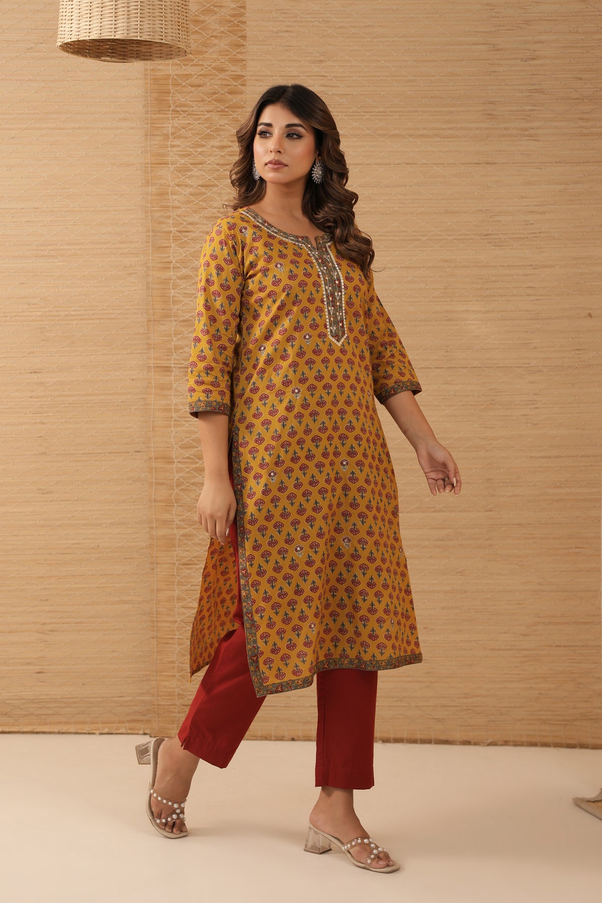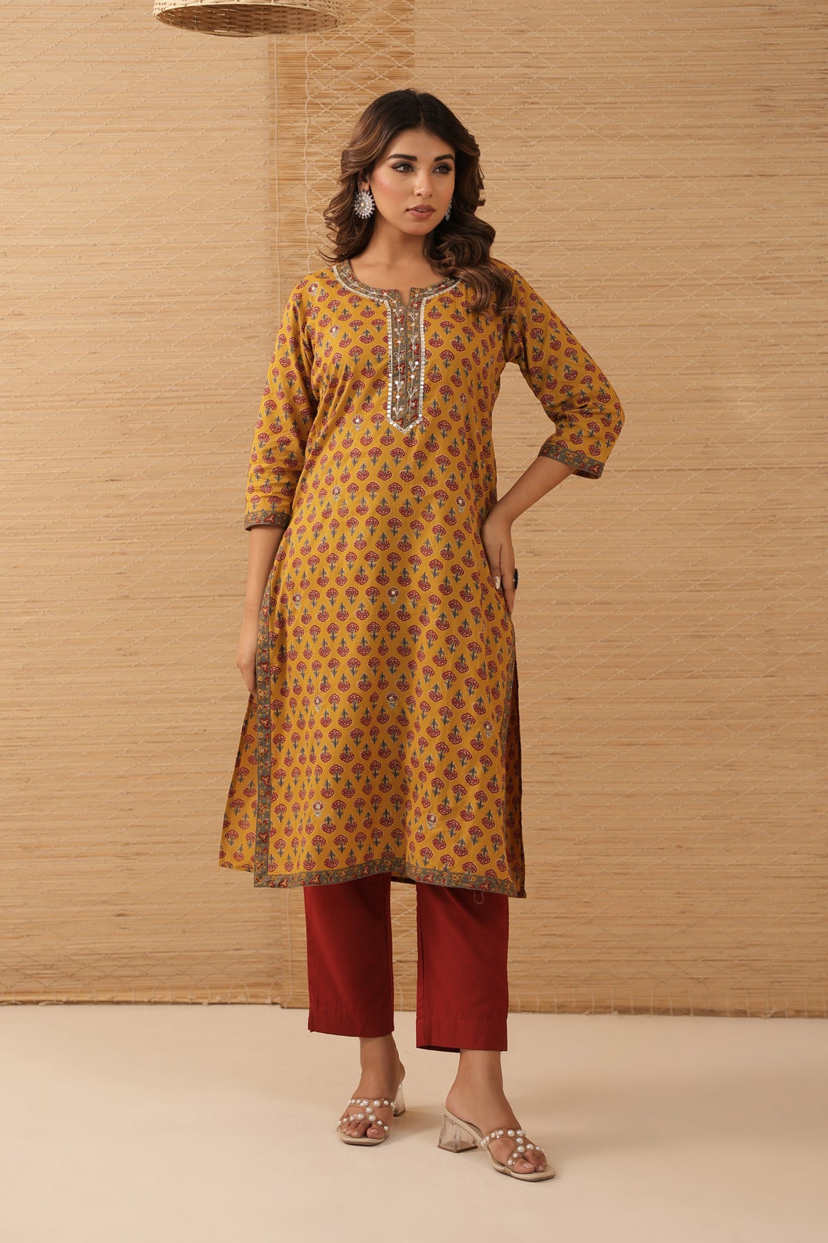 Regular price Rs. 2,199.00Description: Made in soft color, this kurta set is perfect pick for your daily-go outfit to office wear, home wear, or a casual day outing. This set is Hand block printed with intricate print.