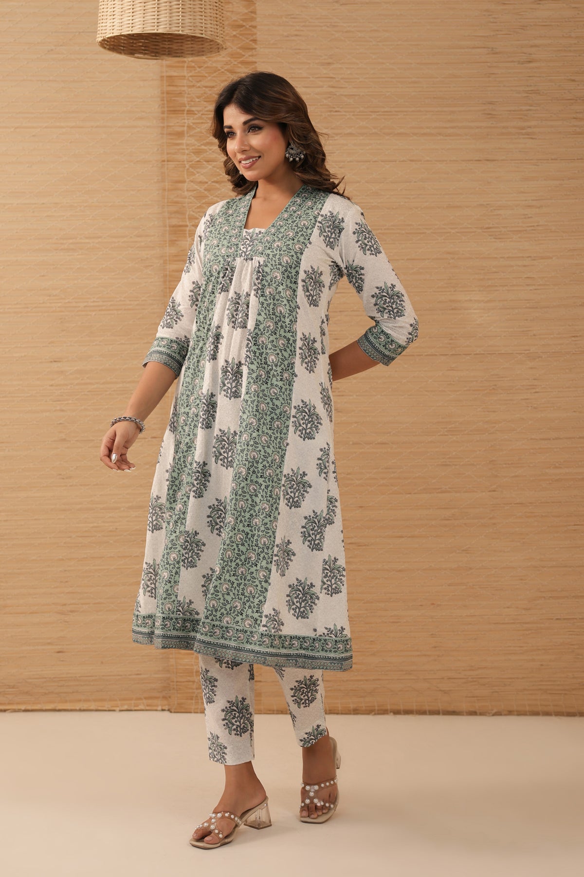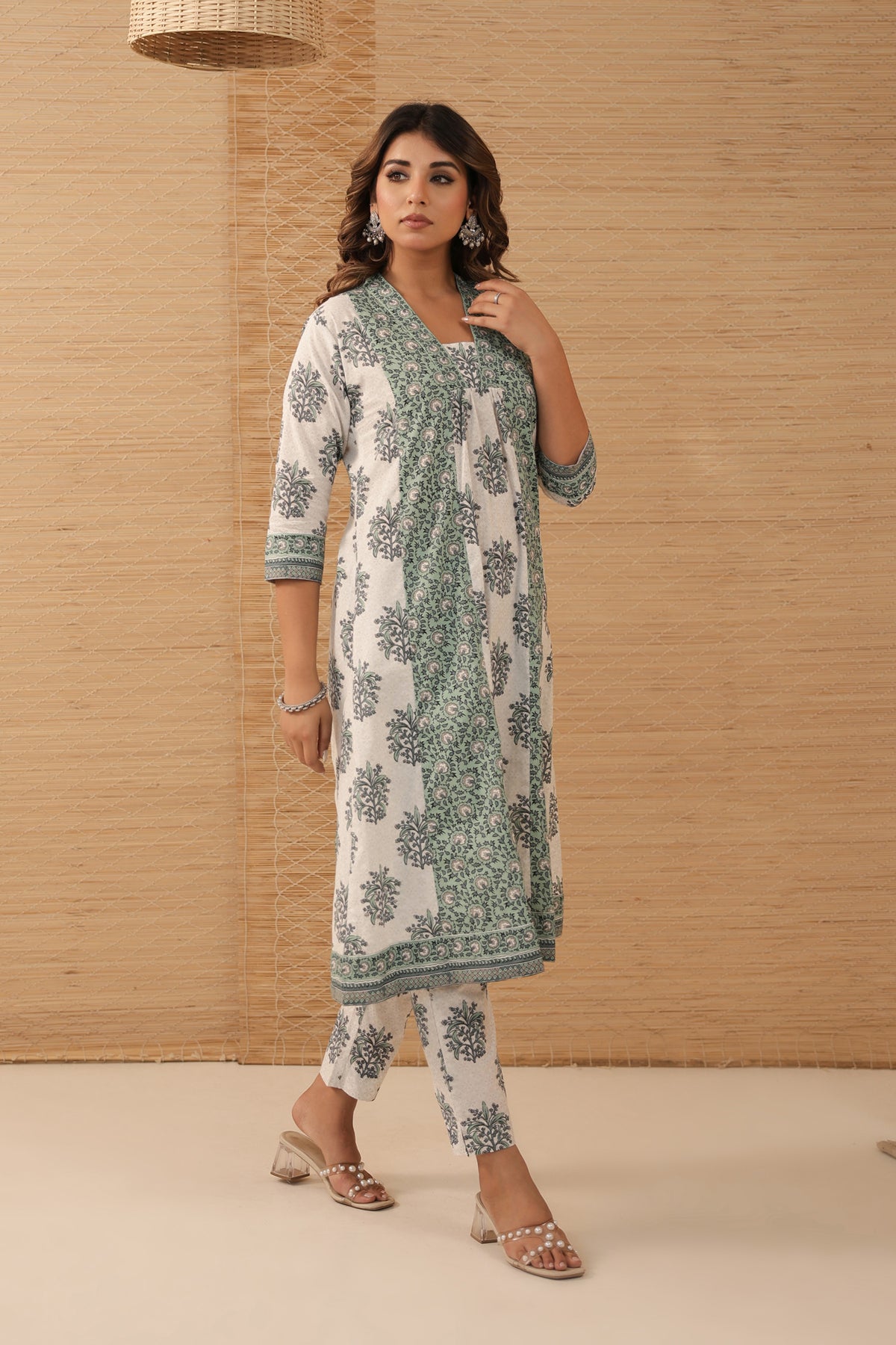 Regular price Rs. 2,250.00Description: Made in soft color, this kurta set is perfect pick for your daily-go outfit to office wear, home wear, or a casual day outing. This set is Hand block printed with intricate print.