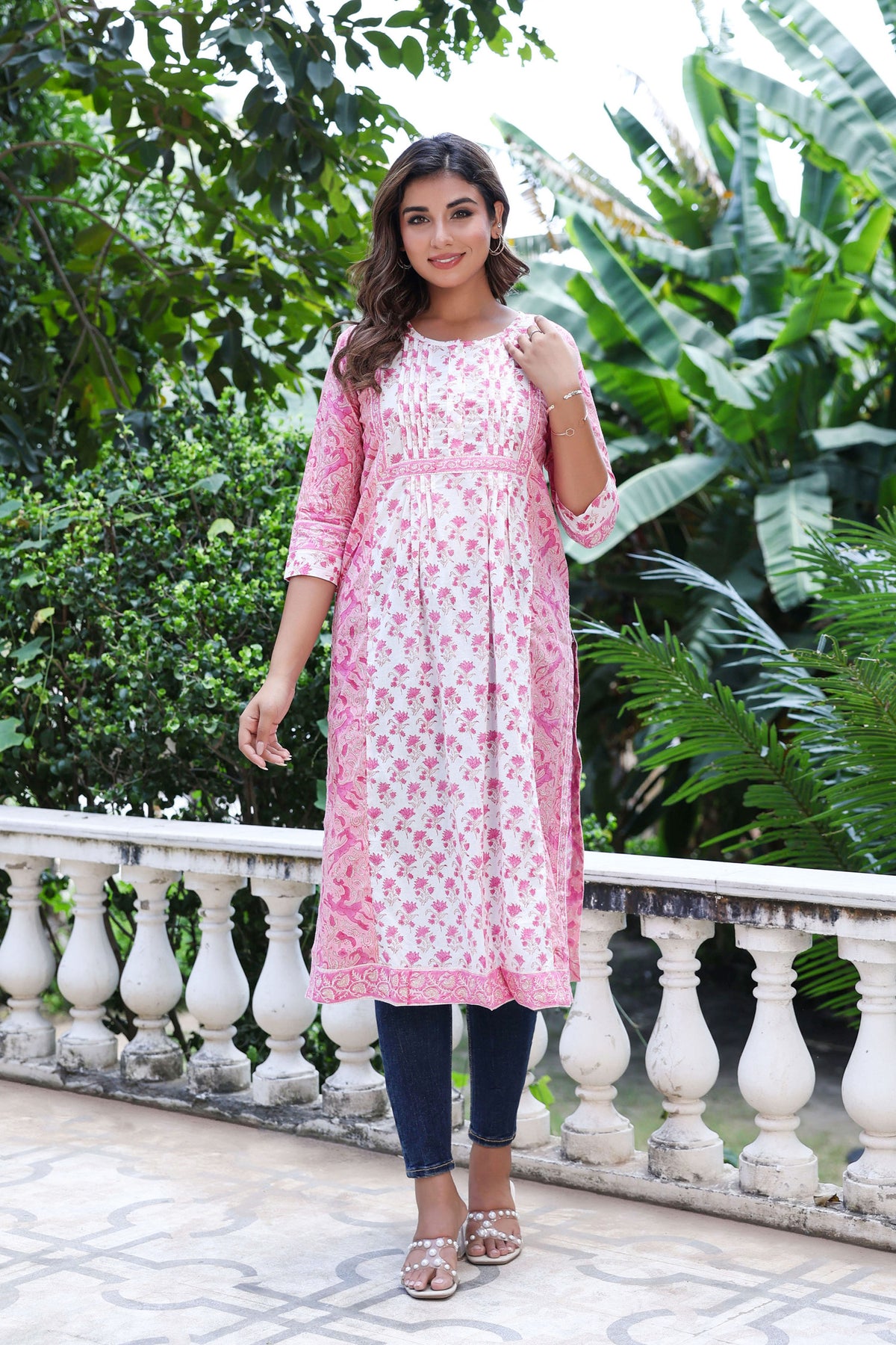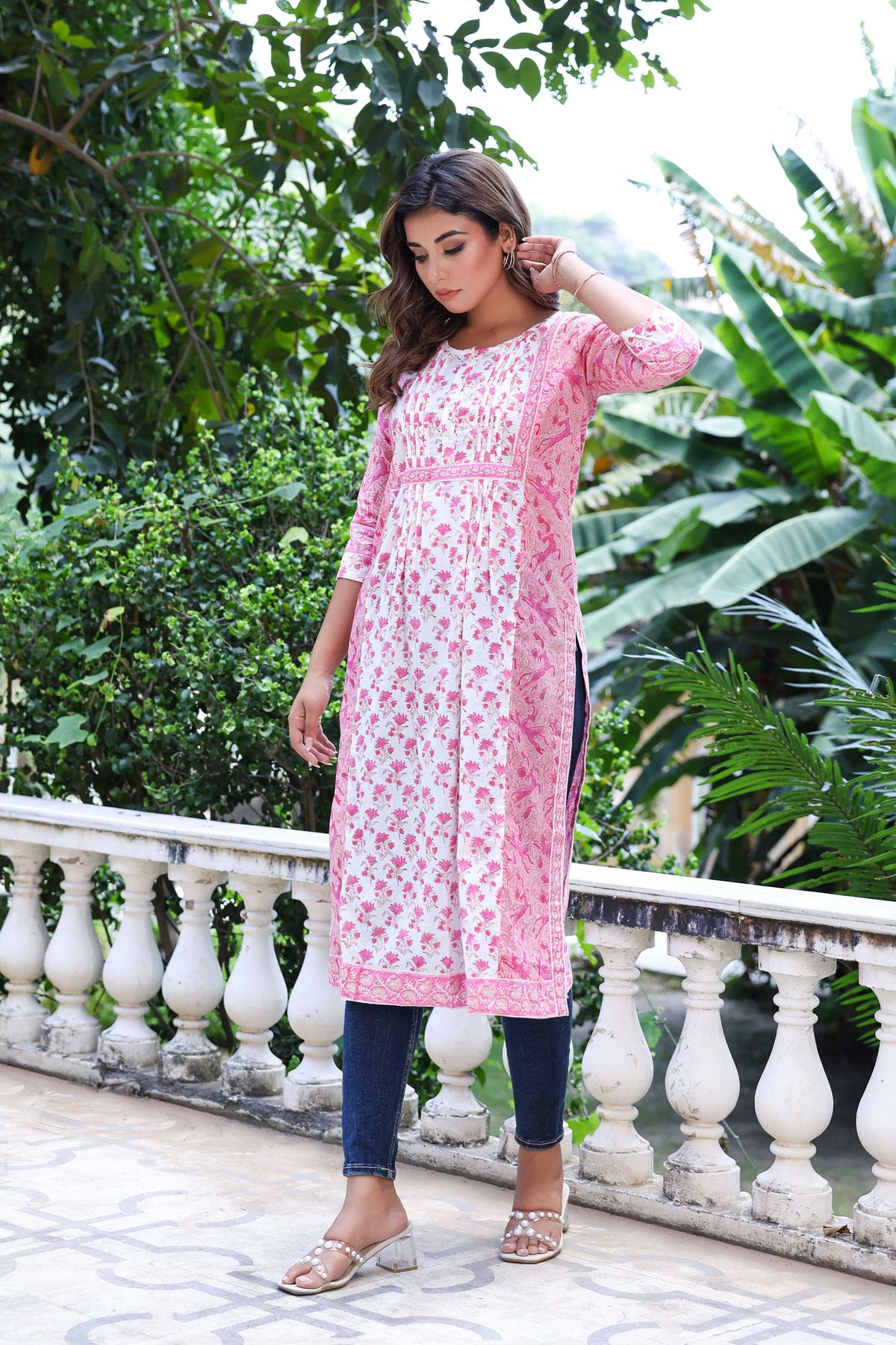 Description: Made in soft breathable cotton fabric, this short kurta is perfect for office wear, home wear, or any type of occasion. Hand block printed in all the natural earthy colors.