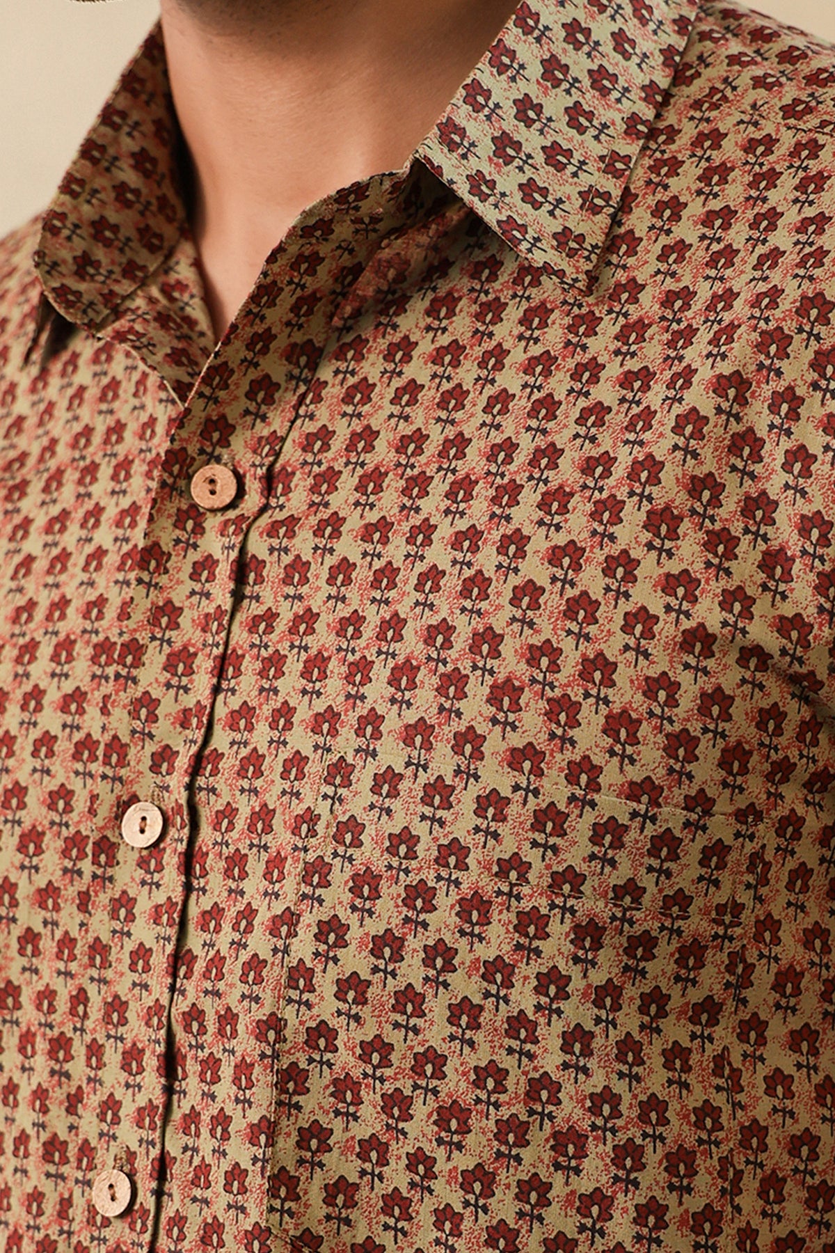 Description: Look handsome and stay comfortable in this Half-sleeved shirt featured with regular spread collar. Fashioned from cotton fabric, this shirt comes with intricate prints all over.