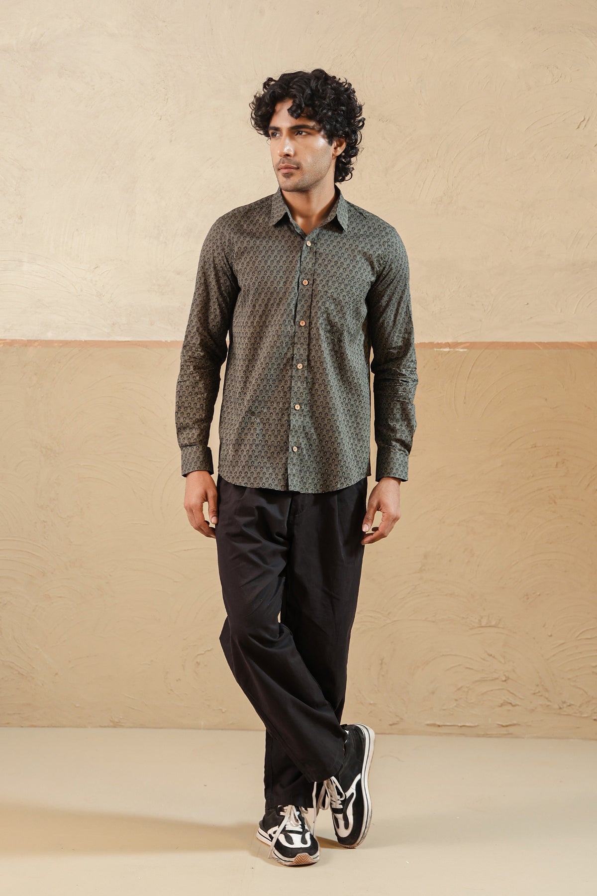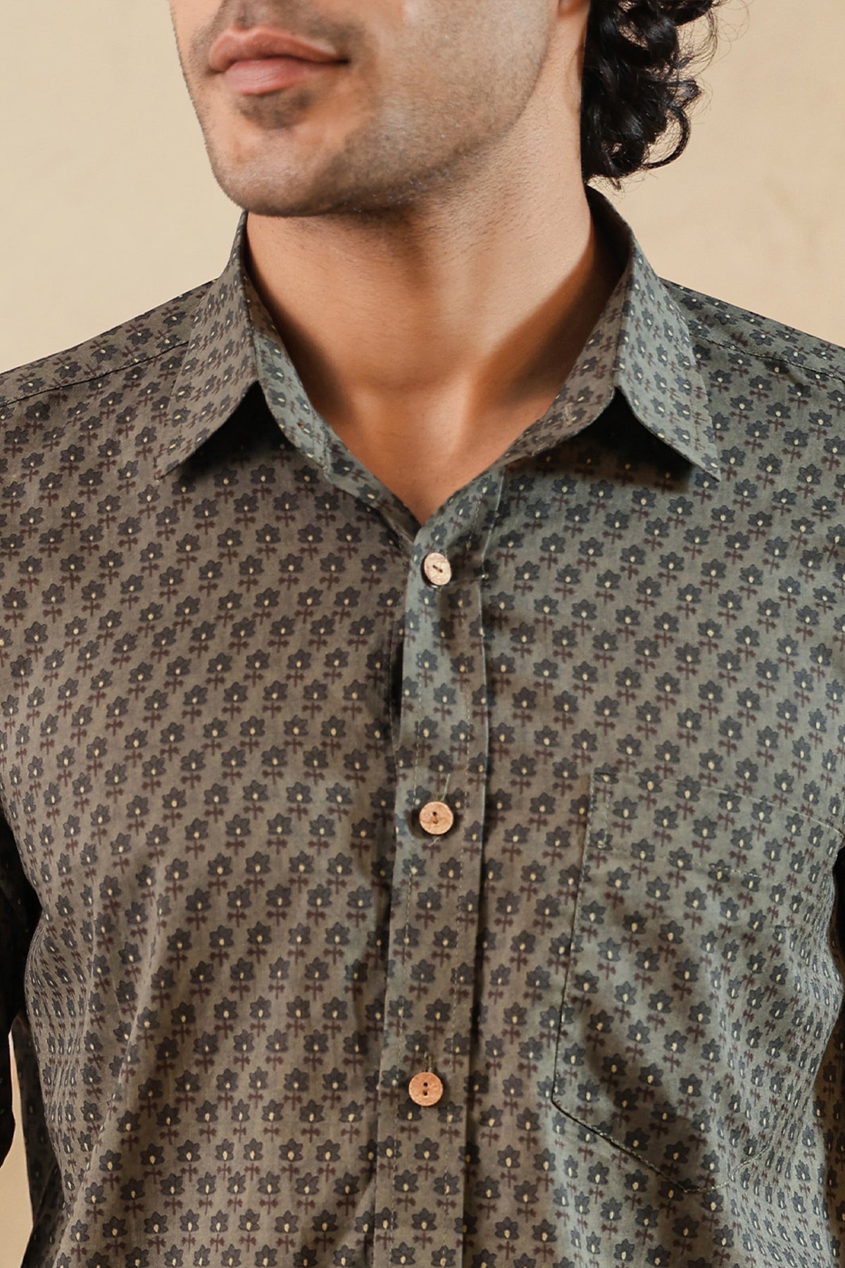 Description: Look handsome and stay comfortable in this Half-sleeved shirt featured with regular spread collar. Fashioned from cotton fabric, this shirt comes with intricate prints all over.