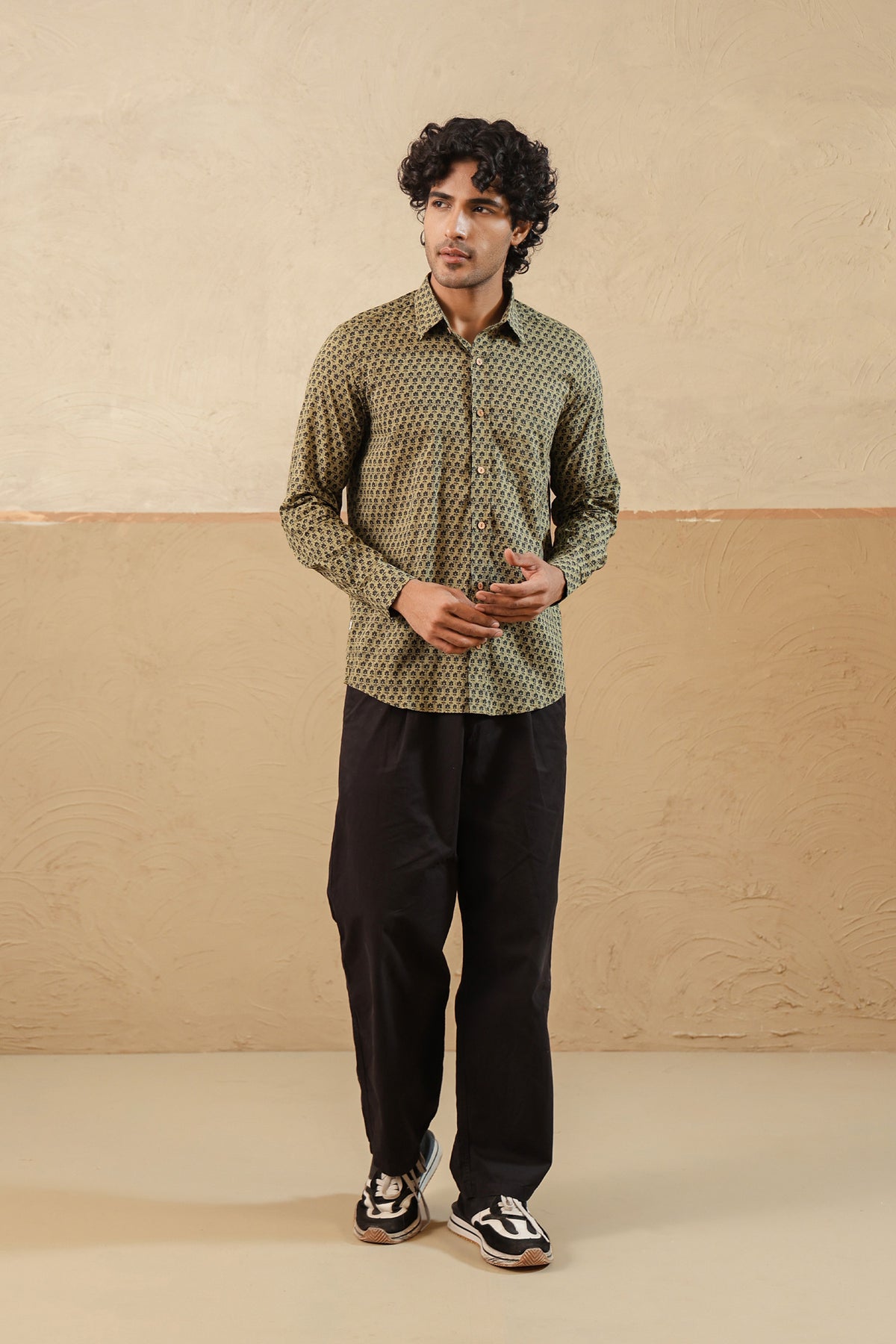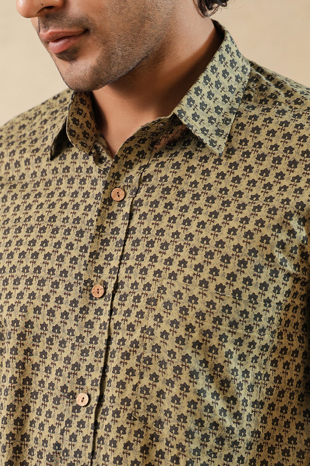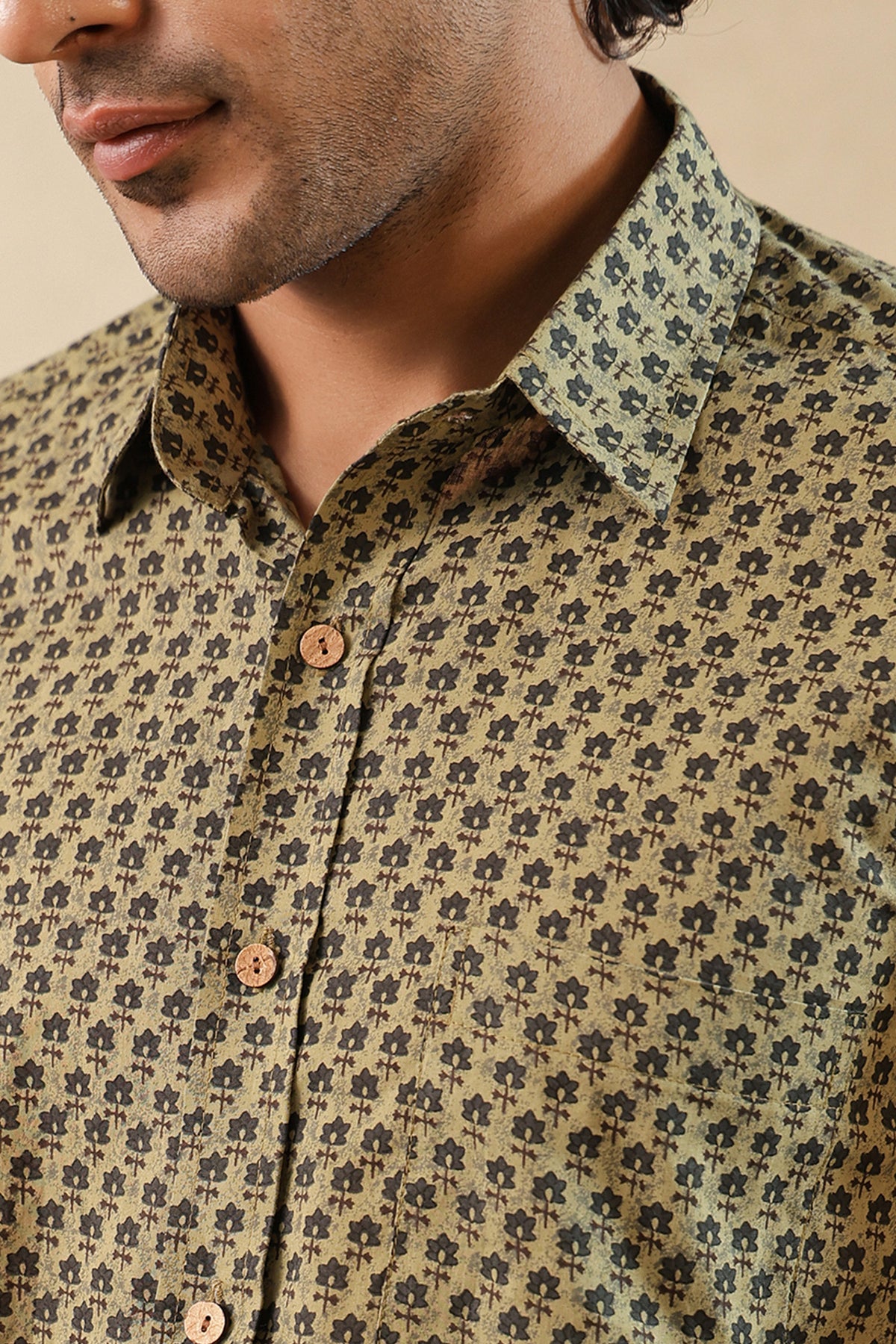 Description: Look handsome and stay comfortable in this Half-sleeved shirt featured with regular spread collar. Fashioned from cotton fabric, this shirt comes with intricate prints all over.