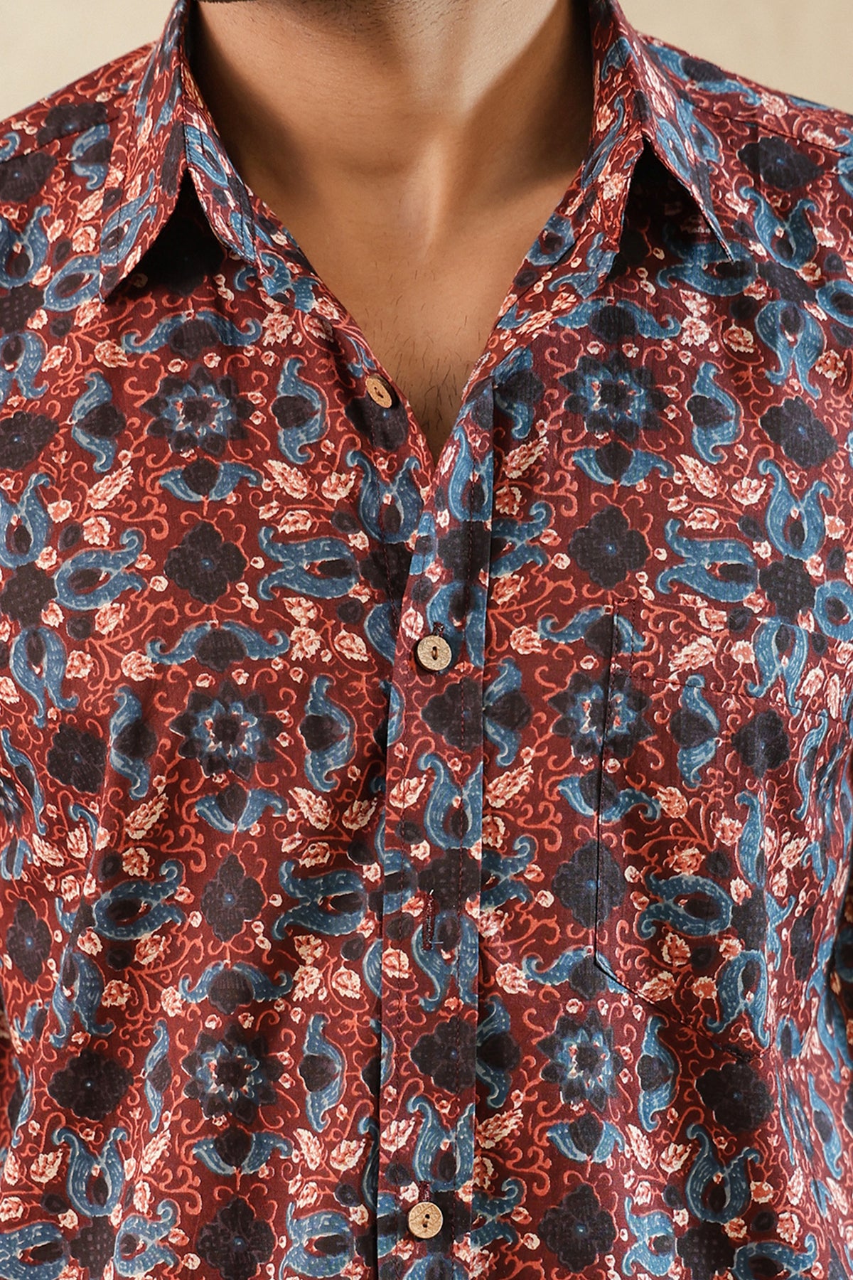 Regular price Rs. 1,150.00Description: Look handsome and stay comfortable in this Half-sleeved shirt featured with regular spread collar. Fashioned from cotton fabric, this shirt comes with intricate prints all over.