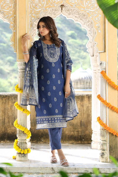 Blue Chanderi Suit Set