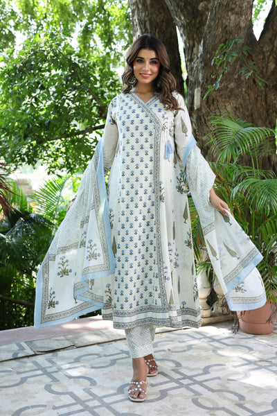 Blue Buti Mughal Angarakha Dress Set