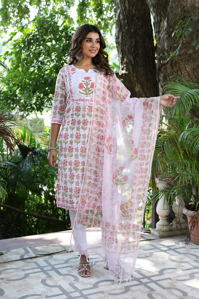 Beige Floral Chanderi Suit Set