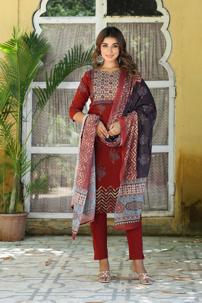 Madder Red Ajrakh Buta Kurta Set