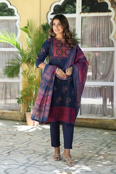 Navy Blue Mughal Kurta Set