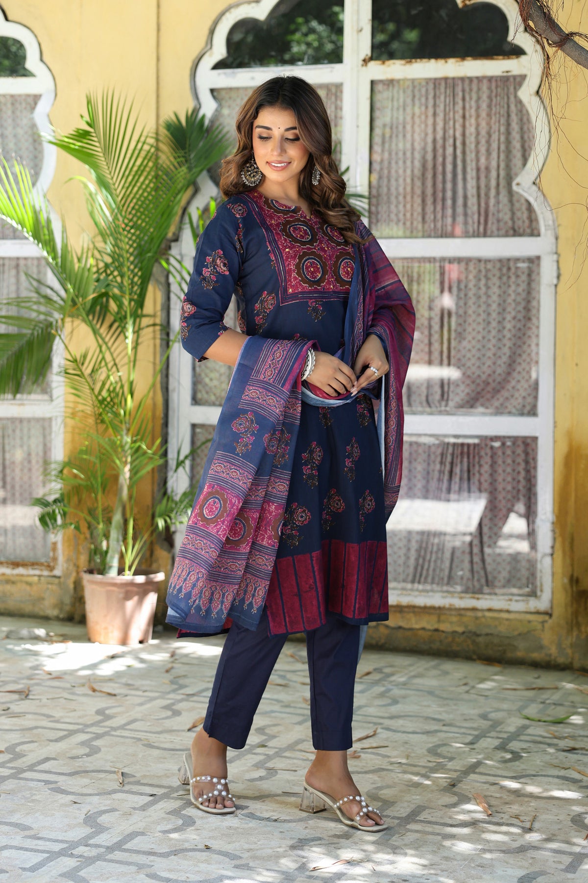 Material: Top- Cotton, Bottom- Cotton, Dupatta-Mul Cotton