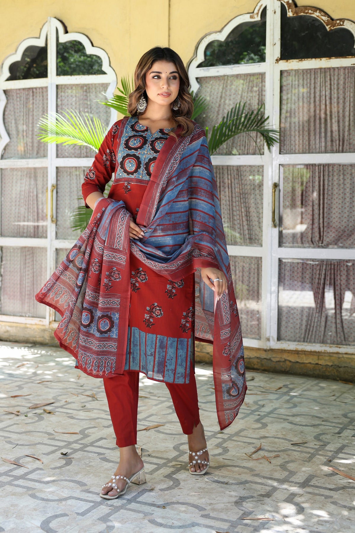 Material: Top- Cotton, Bottom- Cotton, Dupatta-Mul Cotton