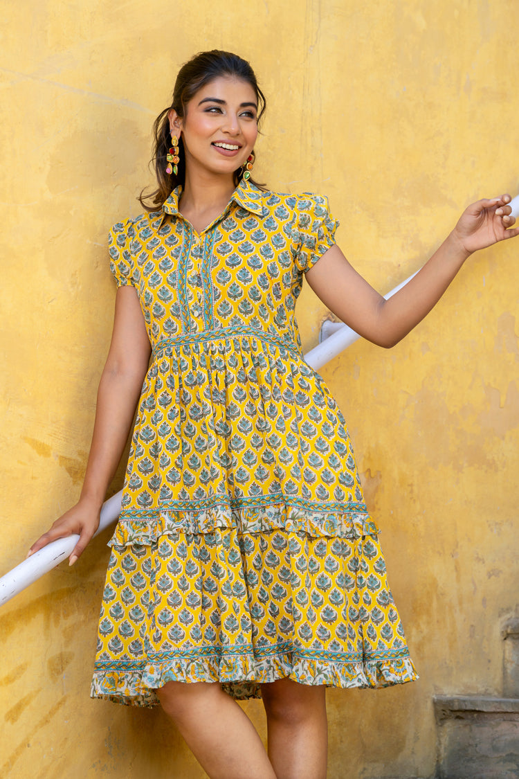 Sachi - Yellow Buti Midi Dress