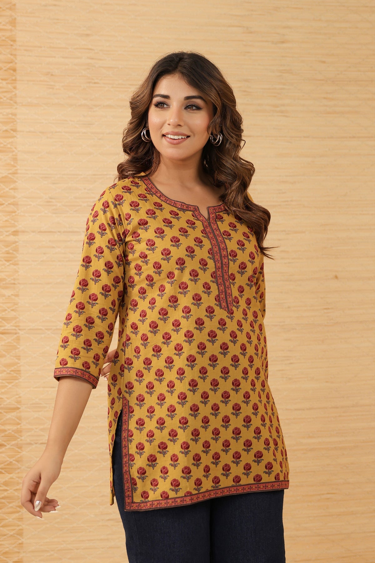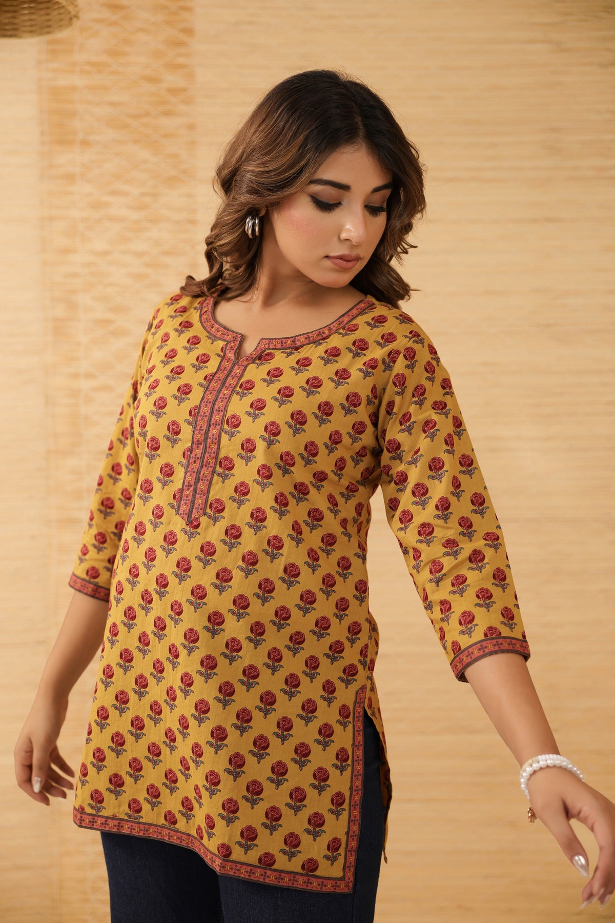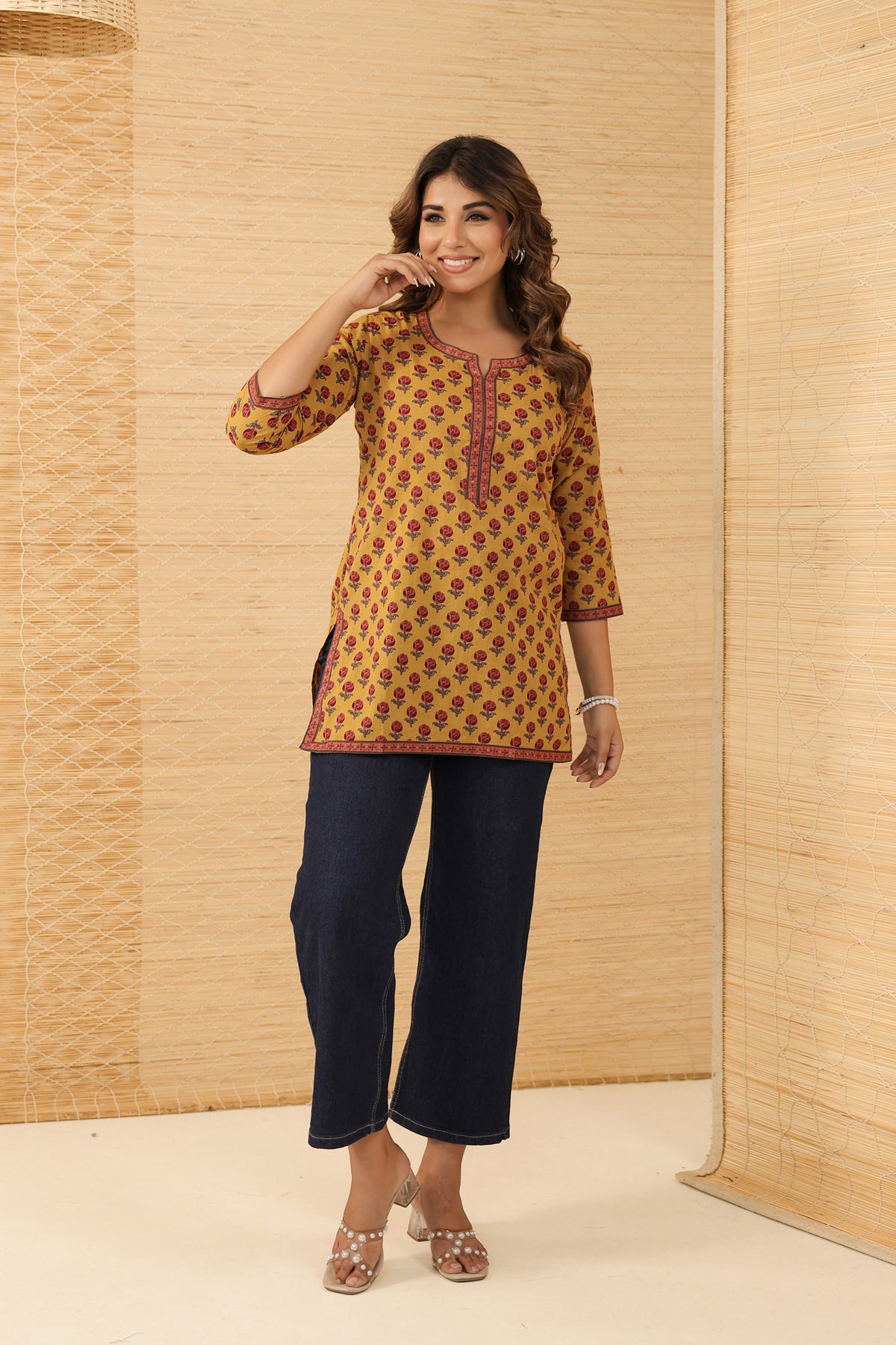 Regular price Rs. 999.00Description: Made in soft breathable cotton fabric, this short kurta is perfect for office wear, home wear, or any type of occasion. Hand block printed in all the natural earthy colors.