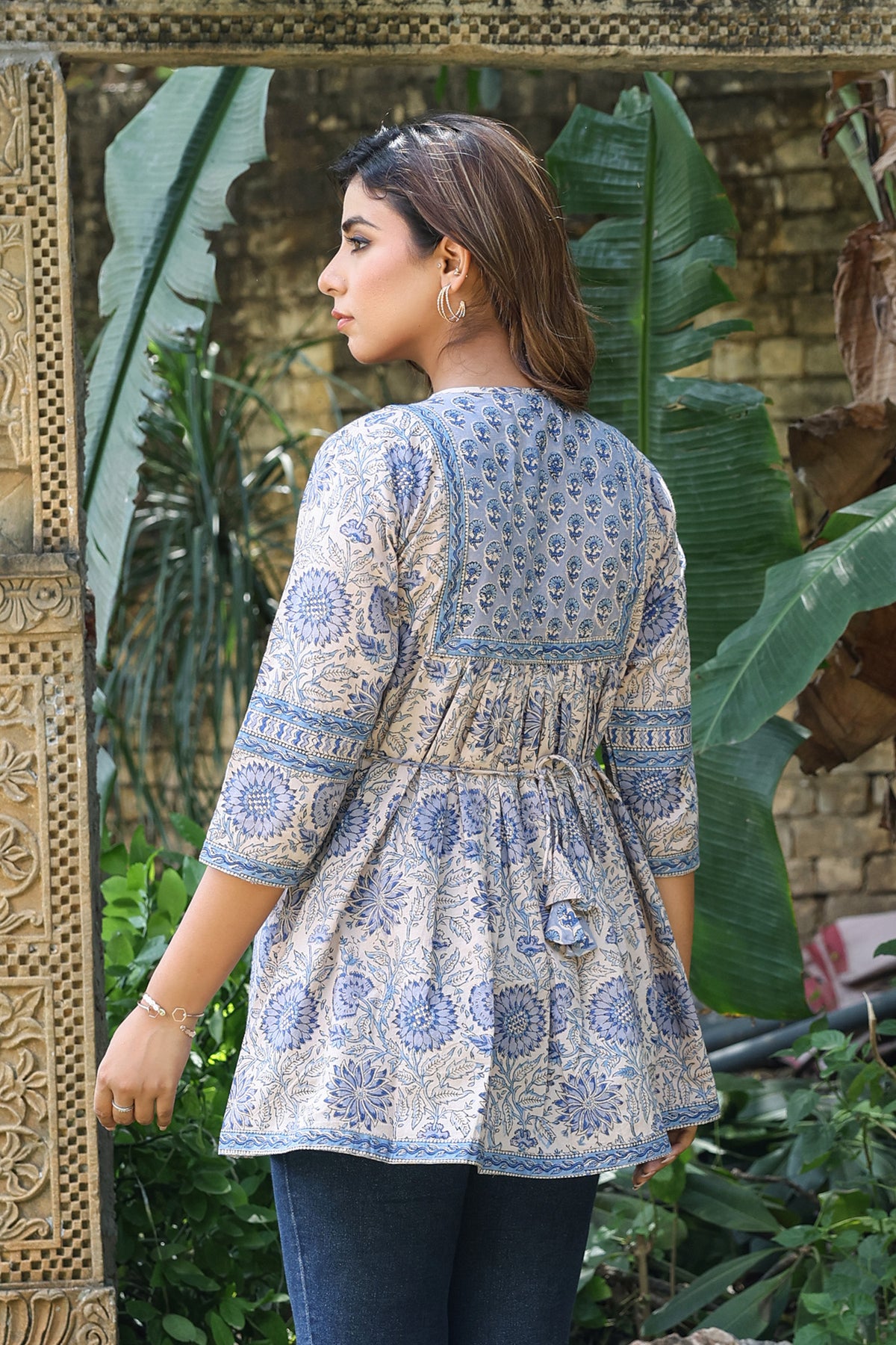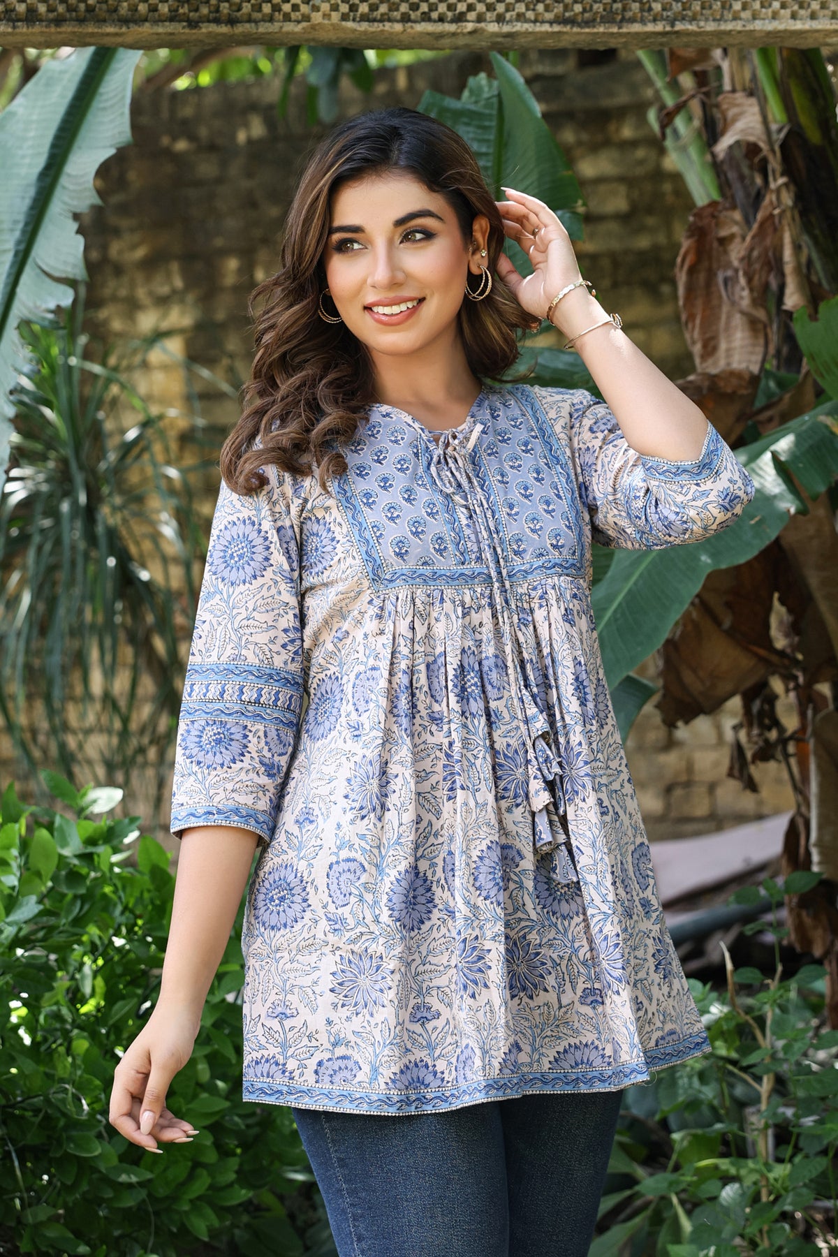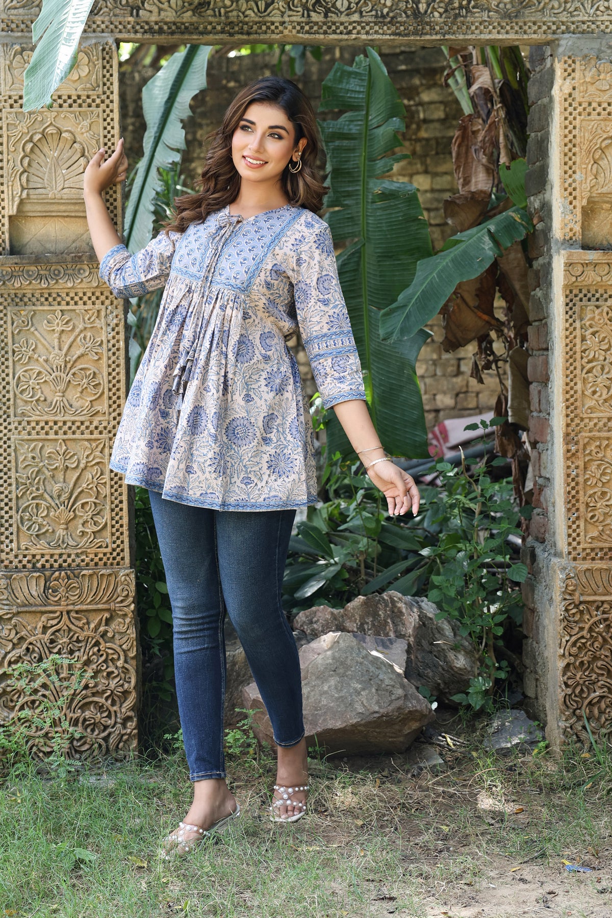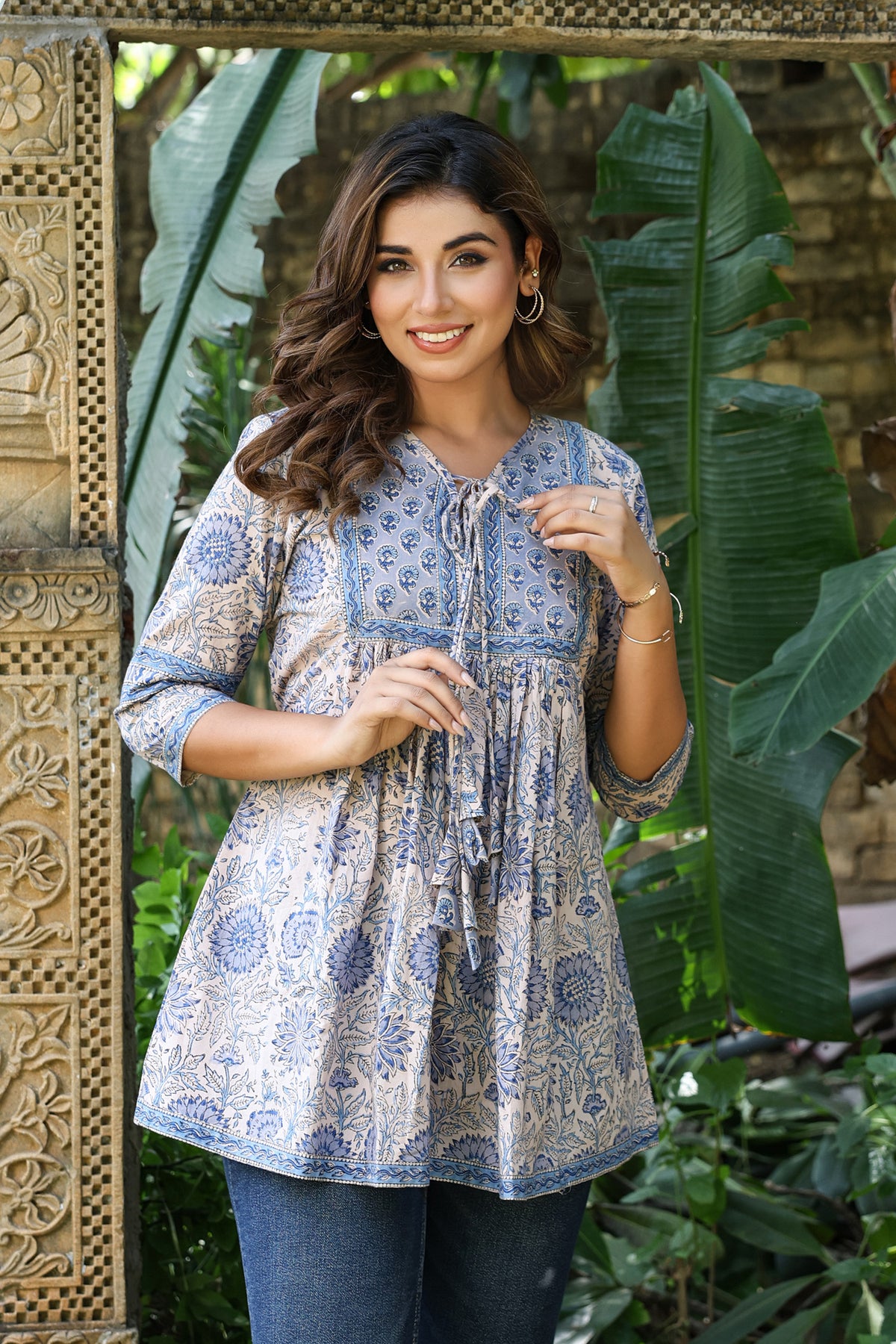 Description: Made in soft breathable cotton fabric, this short kurta is perfect for office wear, home wear, or any type of occasion. Hand block printed in all the natural earthy colors.