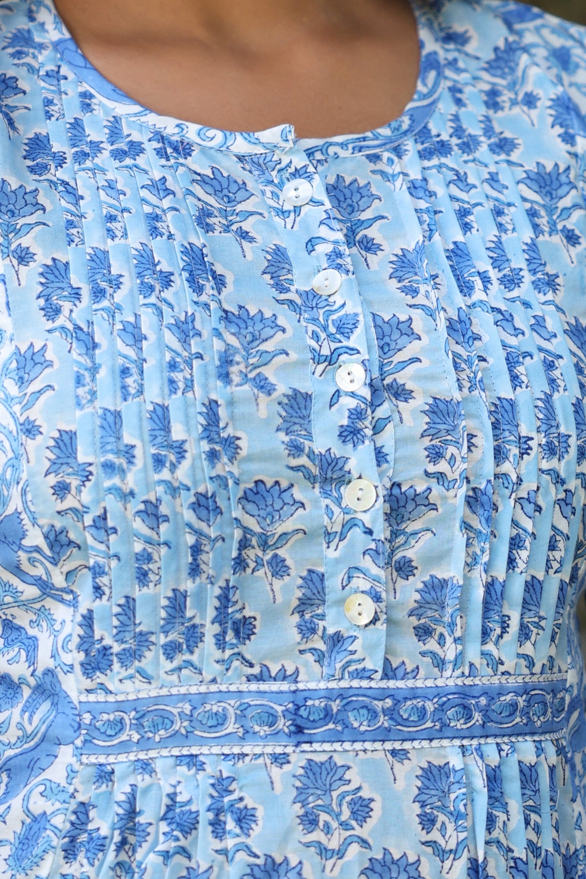 Description: Made in soft breathable cotton fabric, this short kurta is perfect for office wear, home wear, or any type of occasion. Hand block printed in all the natural earthy colors.