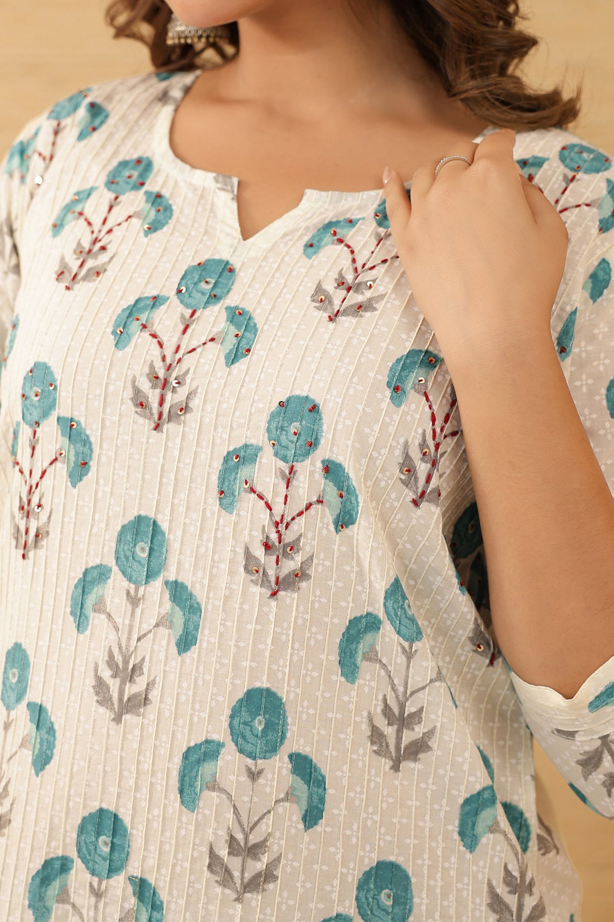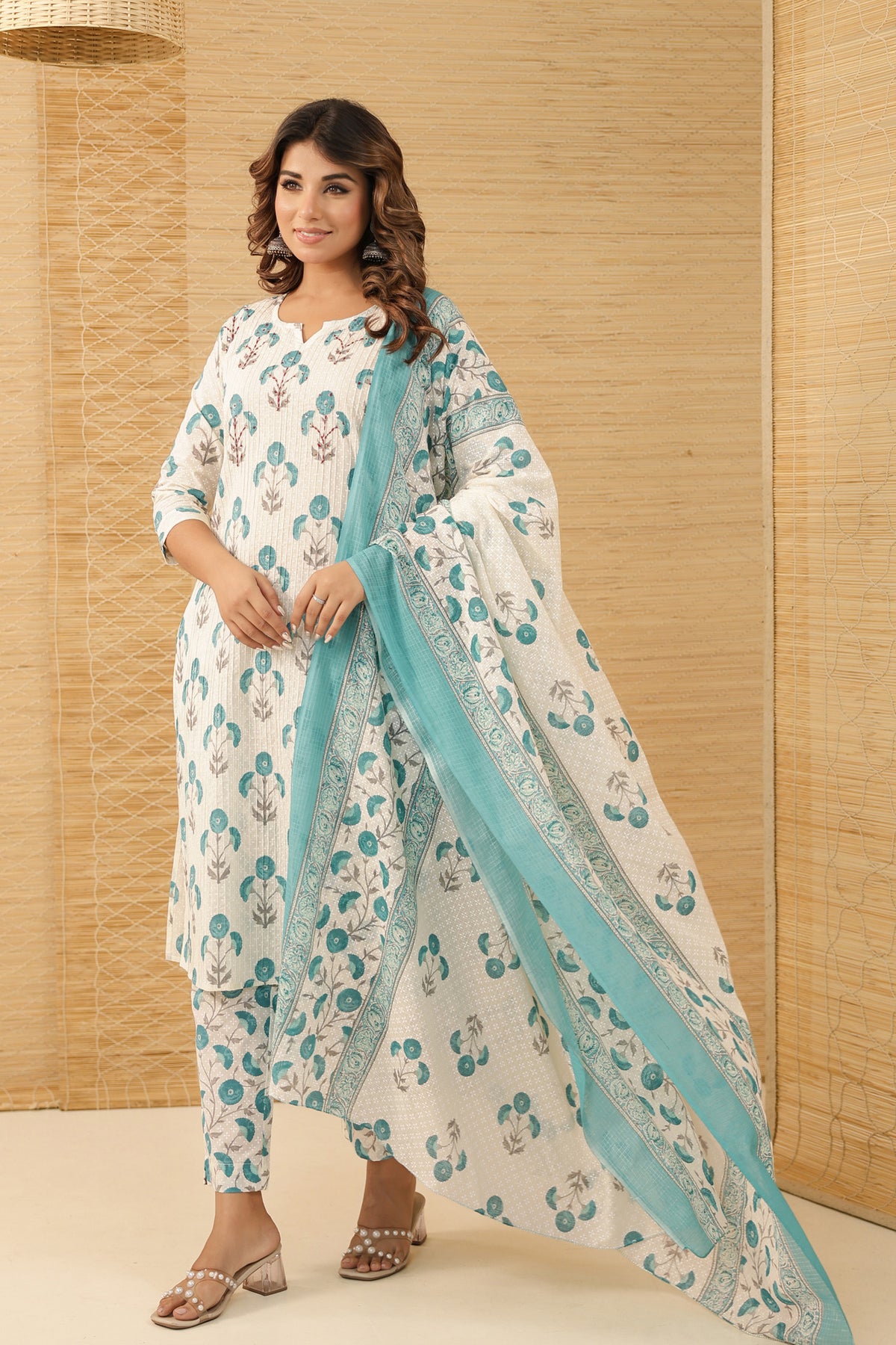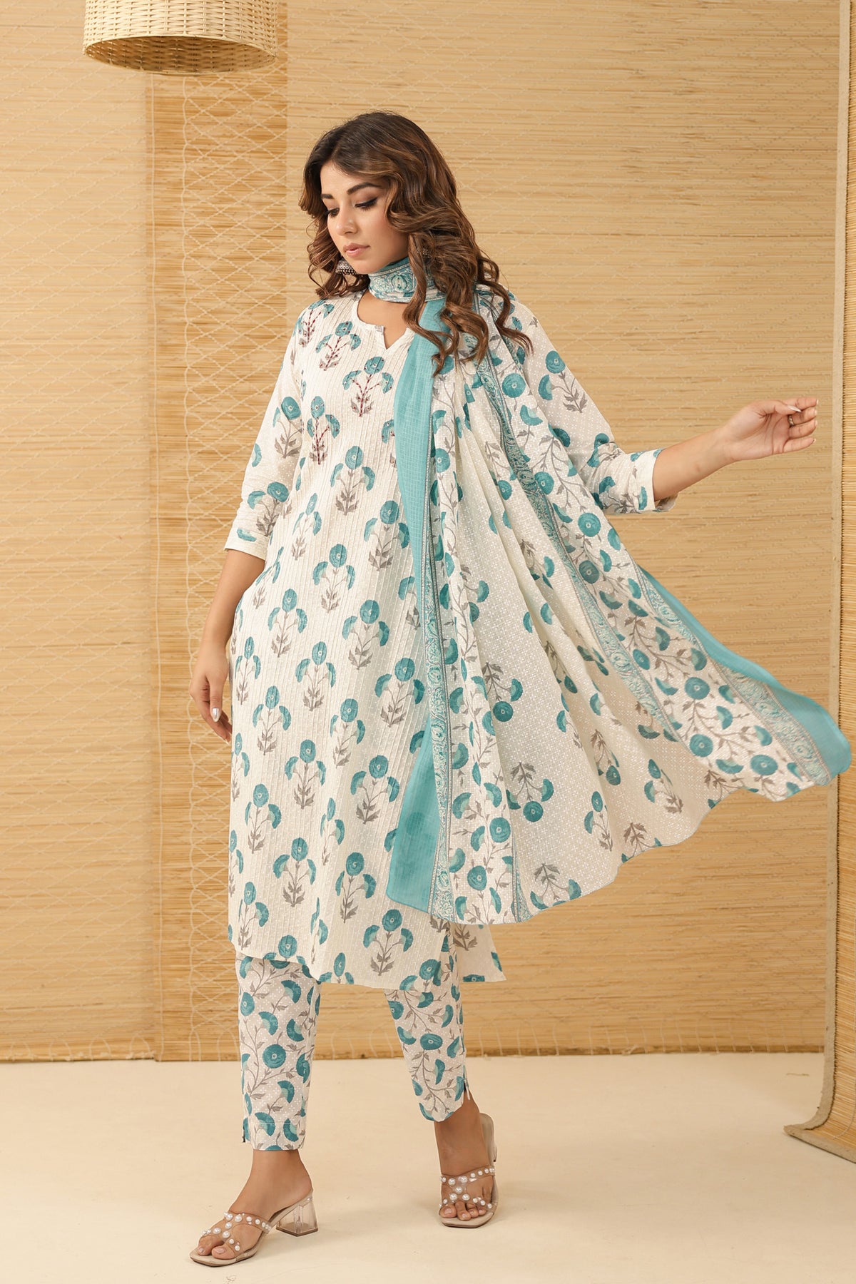 -Description: Made in soft color, this kurta set is perfect pick for your daily-go outfit to office wear, home wear, or a casual day outing. This set is Hand block printed with intricate print.