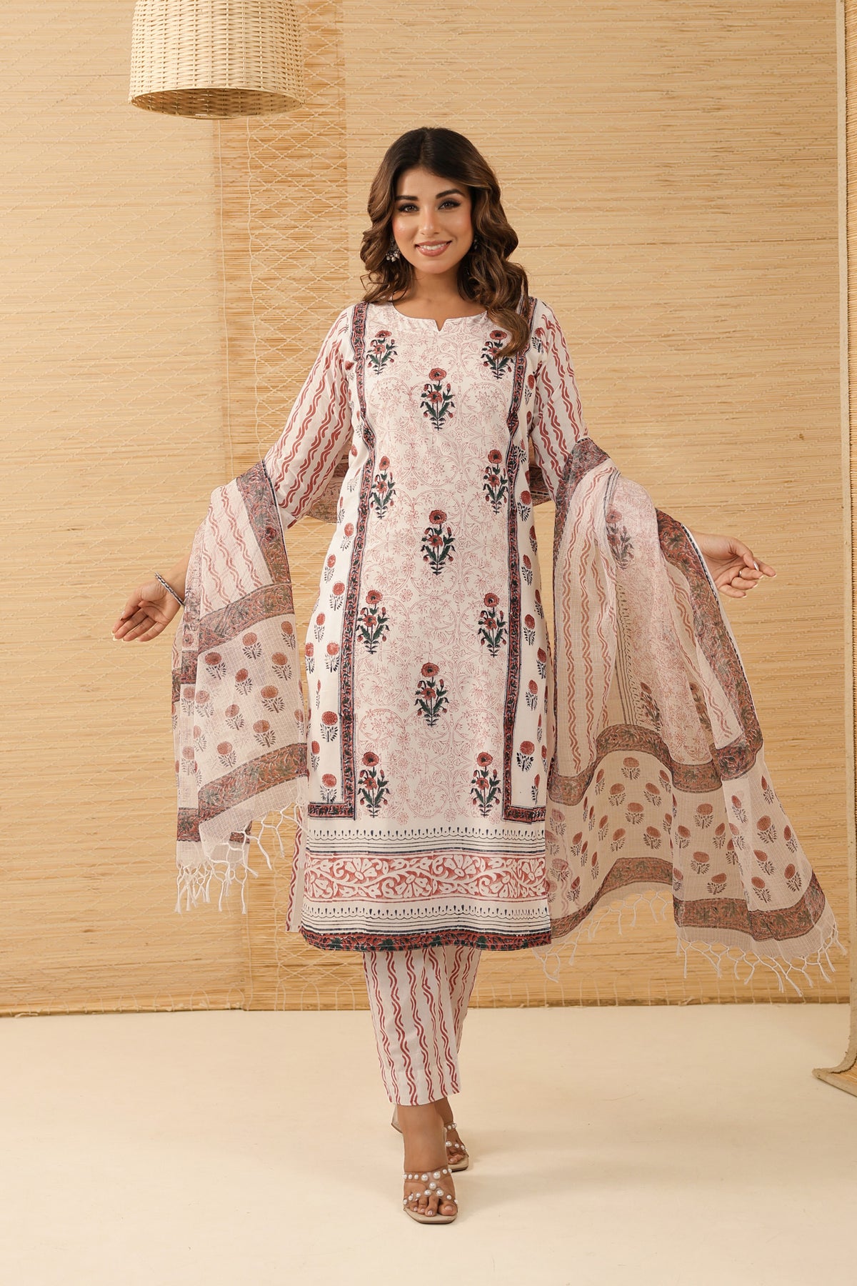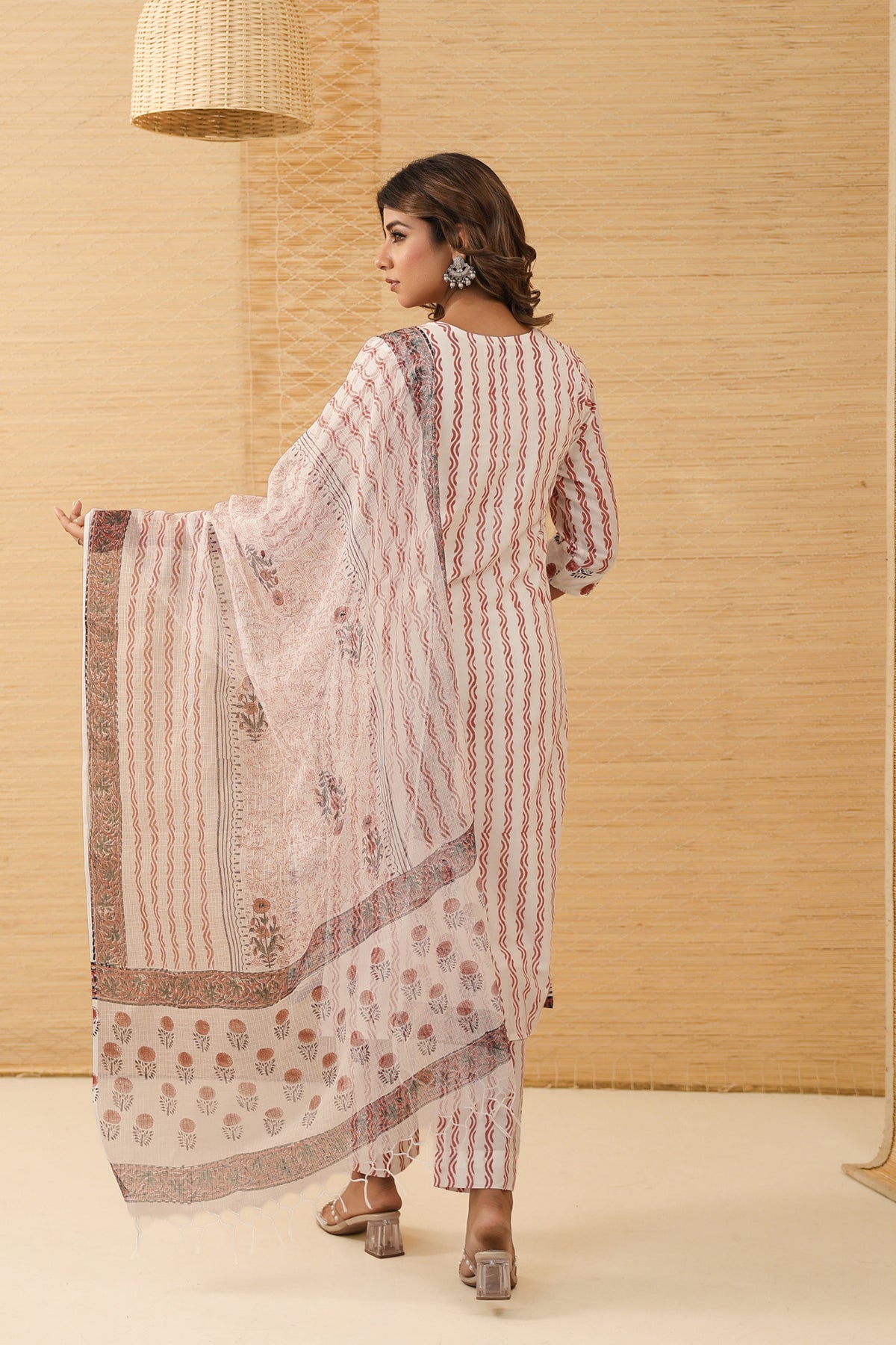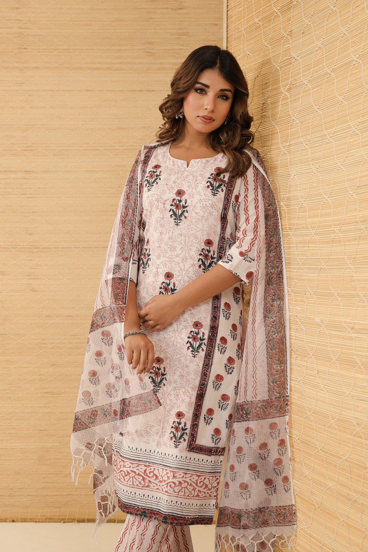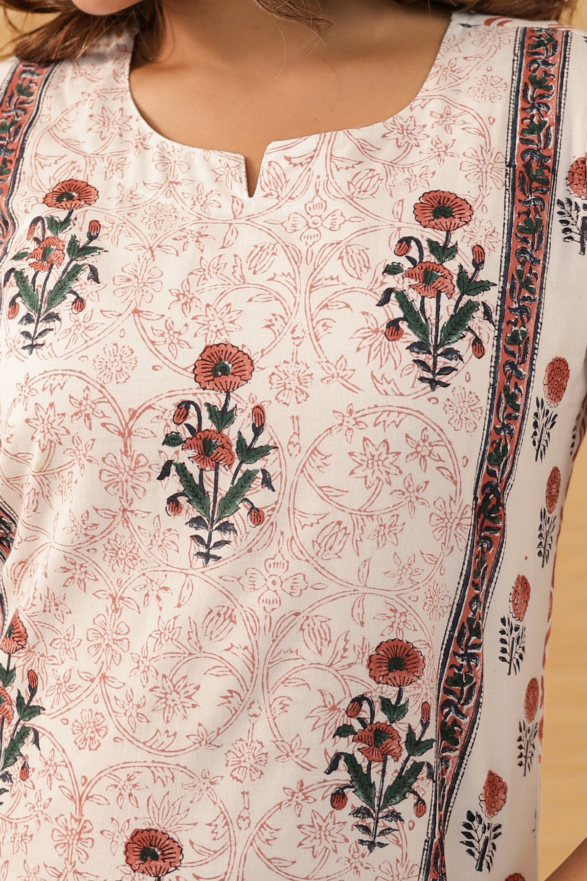 Regular price Rs. 2,450.00-Description: Made in soft color, this kurta set is perfect pick for your daily-go outfit to office wear, home wear, or a casual day outing. This set is Hand block printed with intricate print.