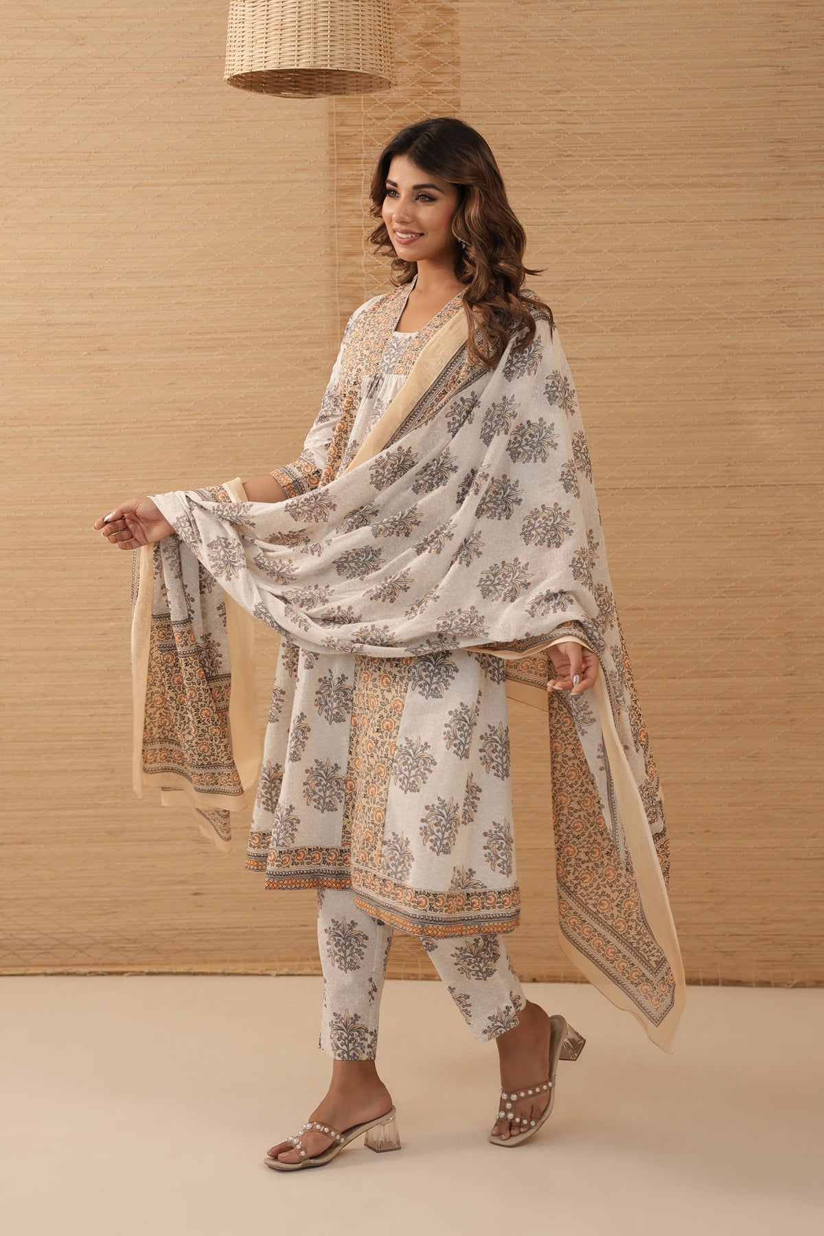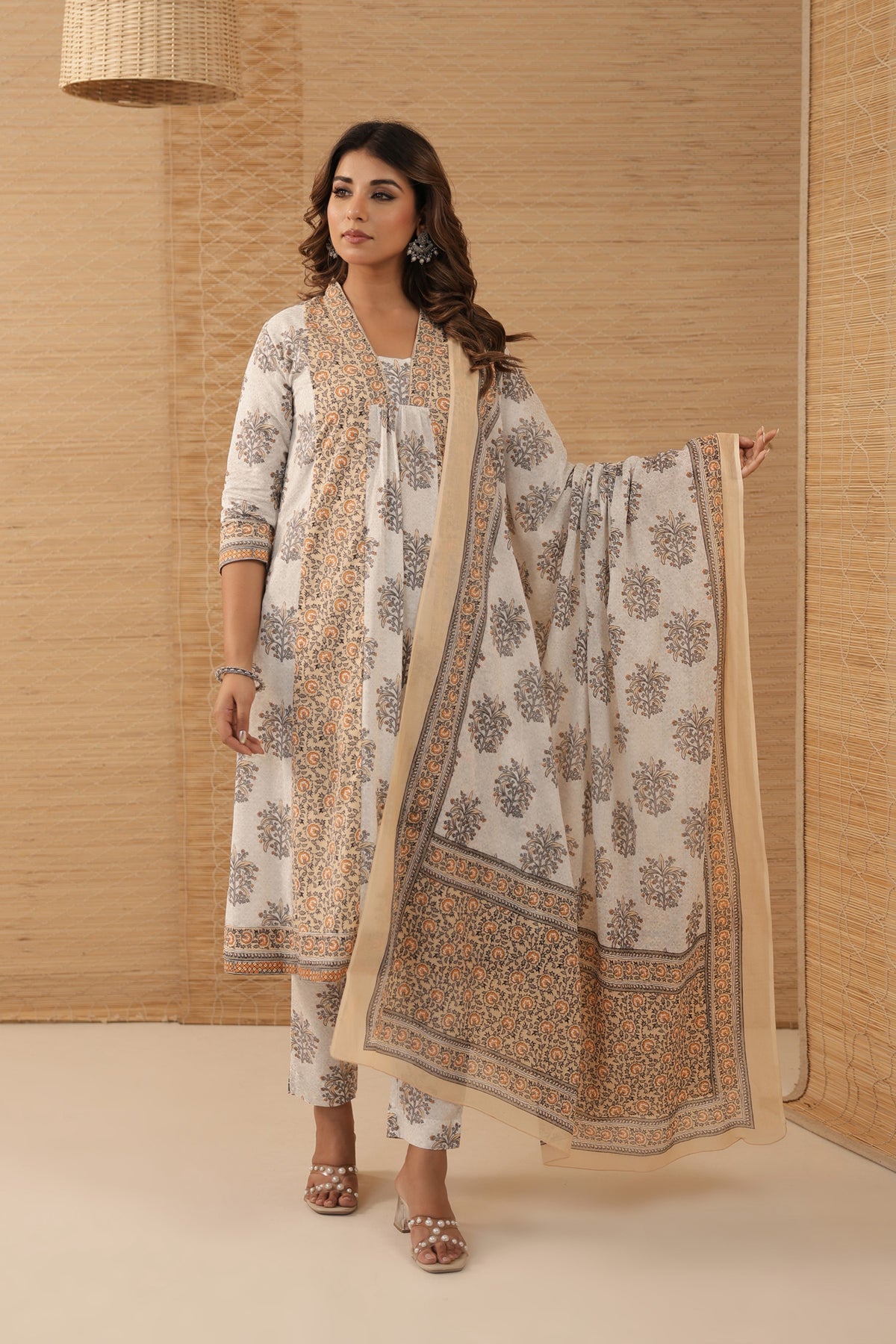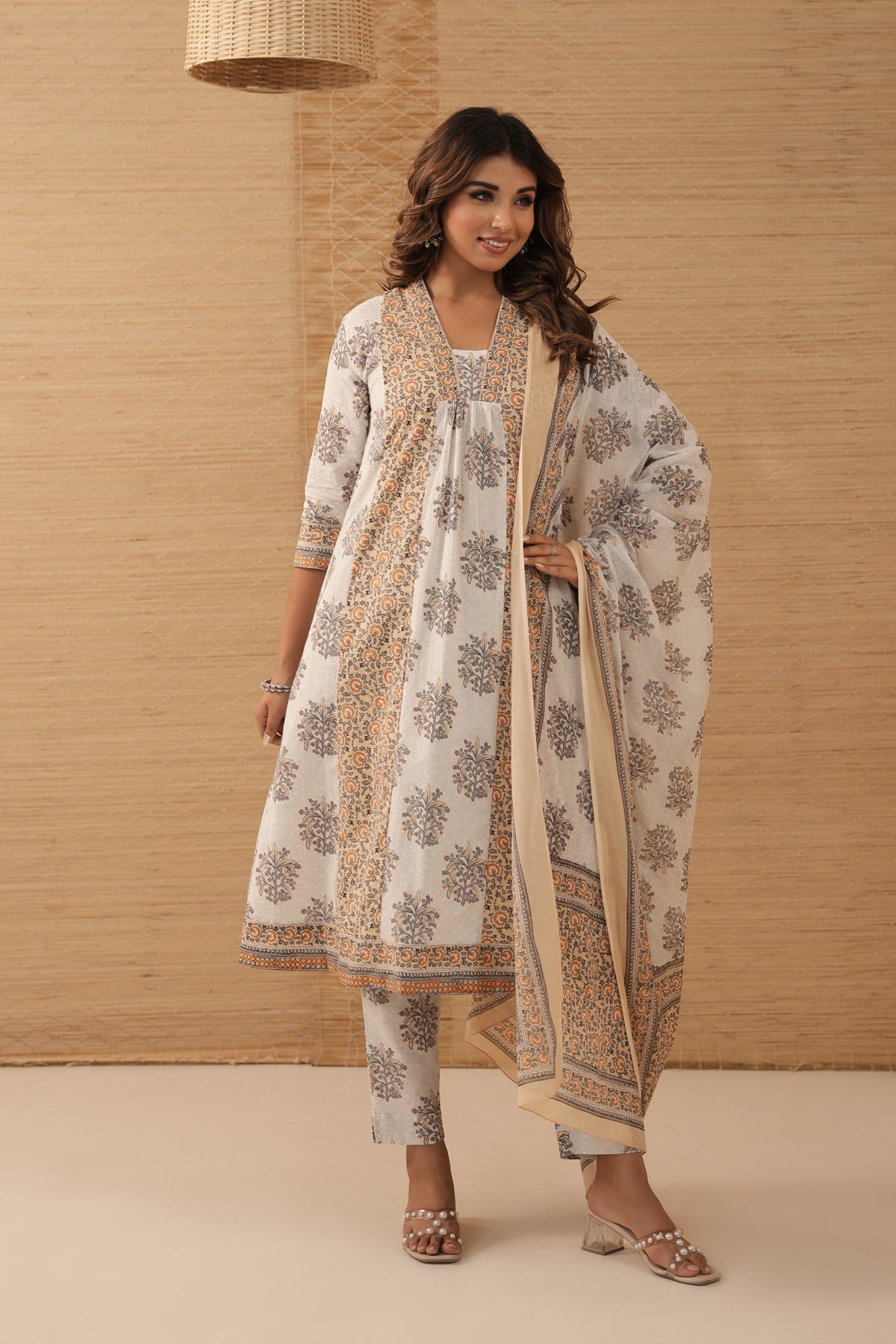 Regular price Rs. 2,450.00-Description: Made in soft color, this kurta set is perfect pick for your daily-go outfit to office wear, home wear, or a casual day outing. This set is Hand block printed with intricate print.