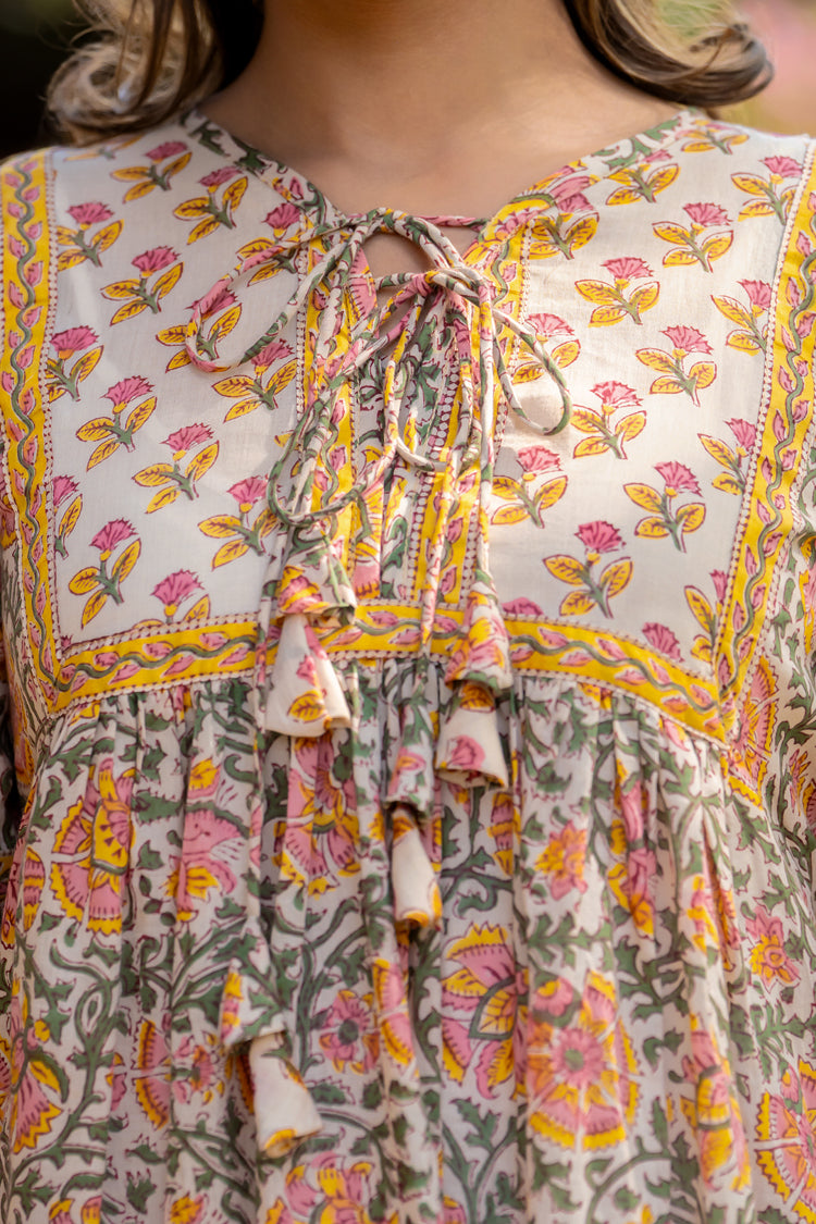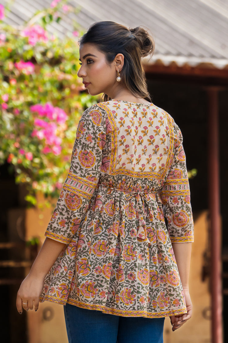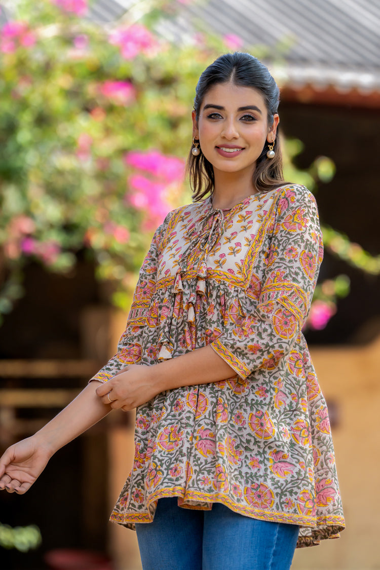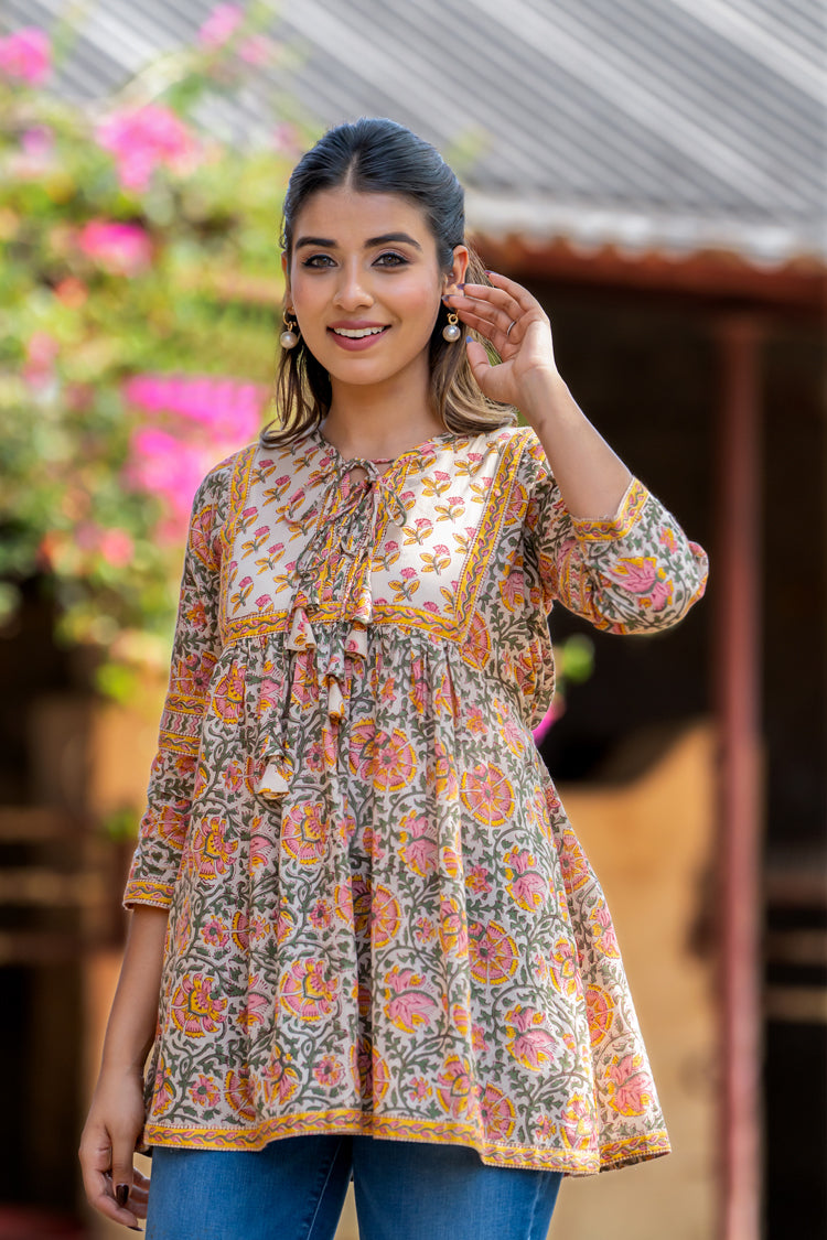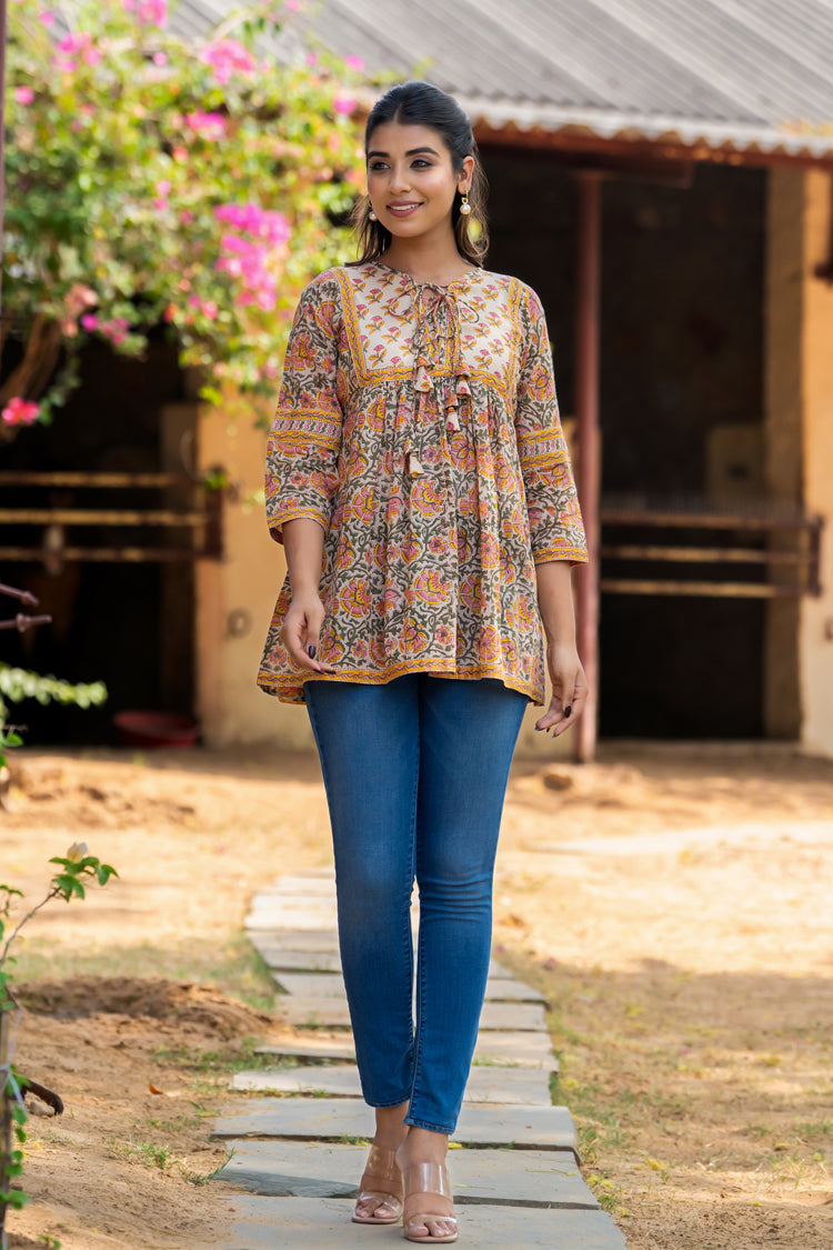 Regular price Rs. 1,299.00Description: Made in soft breathable cotton fabric, this short kurta is perfect for office wear, home wear, or any type of occasion. Handblock printed in all the natural earthy colors.