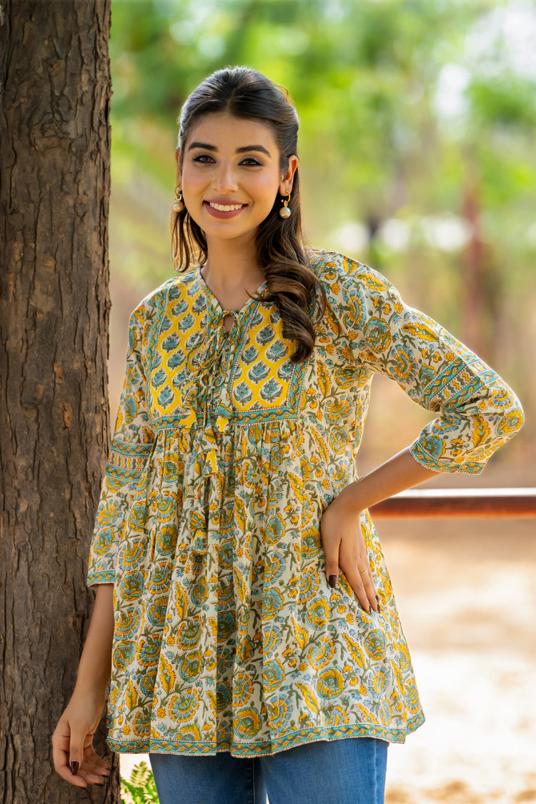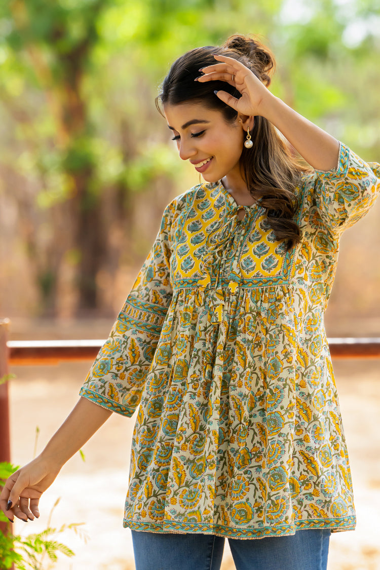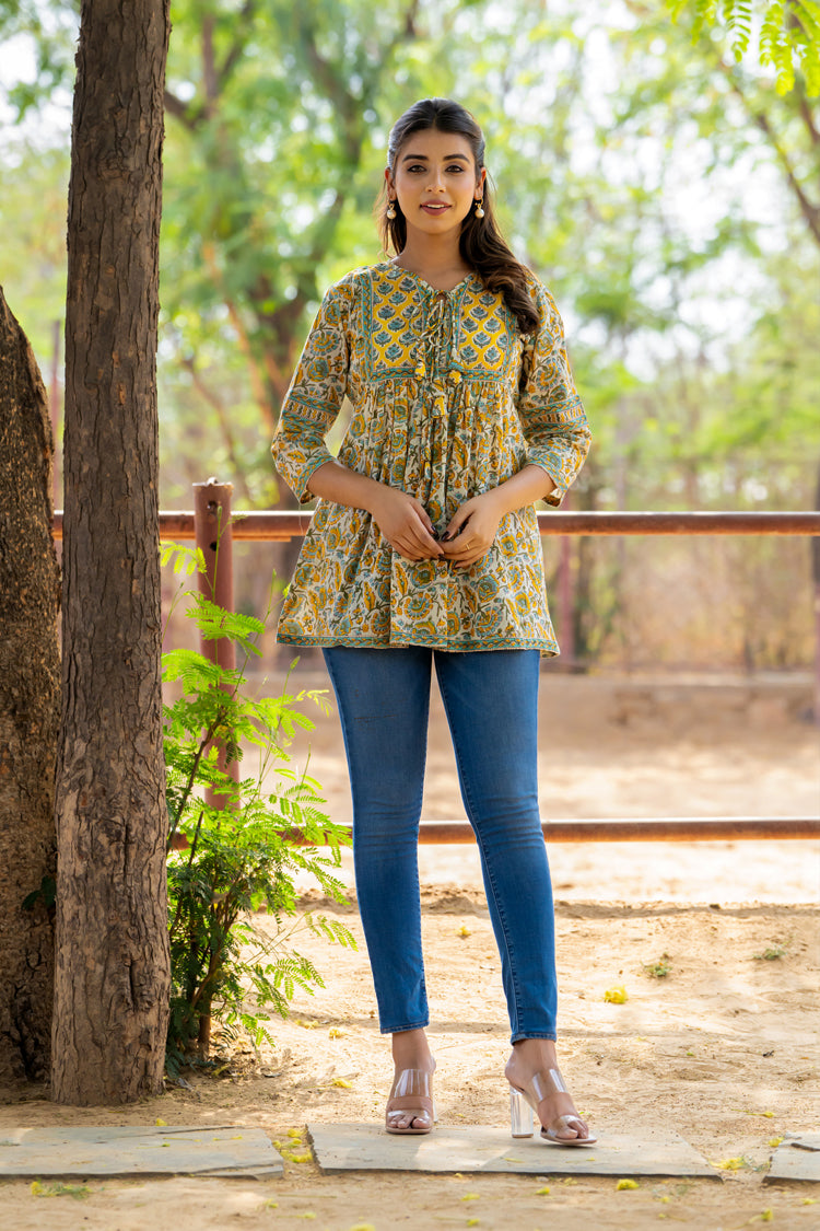 Regular price Rs. 1,299.00Description: Made in soft breathable cotton fabric, this short kurta is perfect for office wear, home wear, or any type of occasion. Handblock printed in all the natural earthy colors.